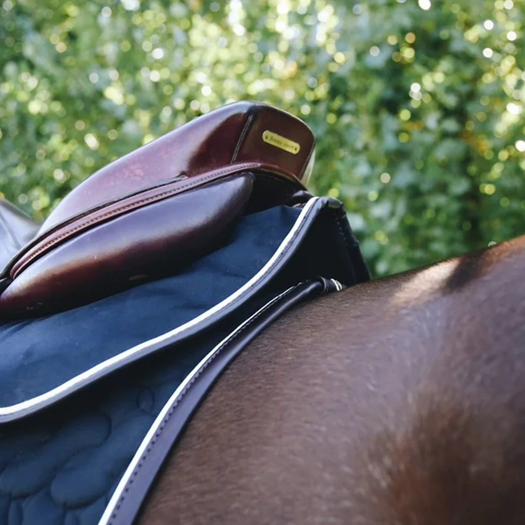 AMORTISSEUR INTELLIGENT ABSORB ÉPAIS | KENTUCKY : Cet amortisseur vous offre une grande absorption des chocs pour le dos du cheval grâce à la mousse interne à mémoire de forme. Cet amortisseur est idéal en concours ou à la maison en combinaison avec notre tapis de selle Intelligent ou notre tapis de selle classique. L’amortisseur peut être ouvert pour retirer la mousse à mémoire de forme avant le lavage. De cette façon, il séchera plus rapidement. Chaque amortisseur Intelligent Absorb possède un passepoil blanc avec un bord en cuir artificiel marron pour garantir un look élégant.