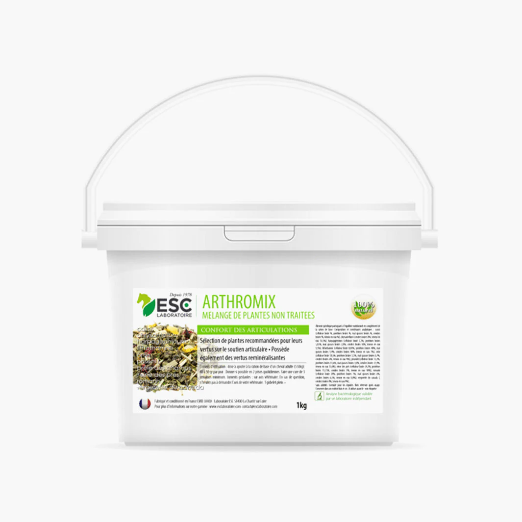 Les plantes qui composent Arthromix ciblent les zones clés du mouvement: articulations, tendons et tissus conjonctifs, afin d’aider à maintenir une démarche fluide et agréable même après une séance d’entraînement intensive. Cette association végétale offre une approche naturelle et complémentaire pour le soutien articulaire des chevaux sensibles ou sujets aux raideurs.