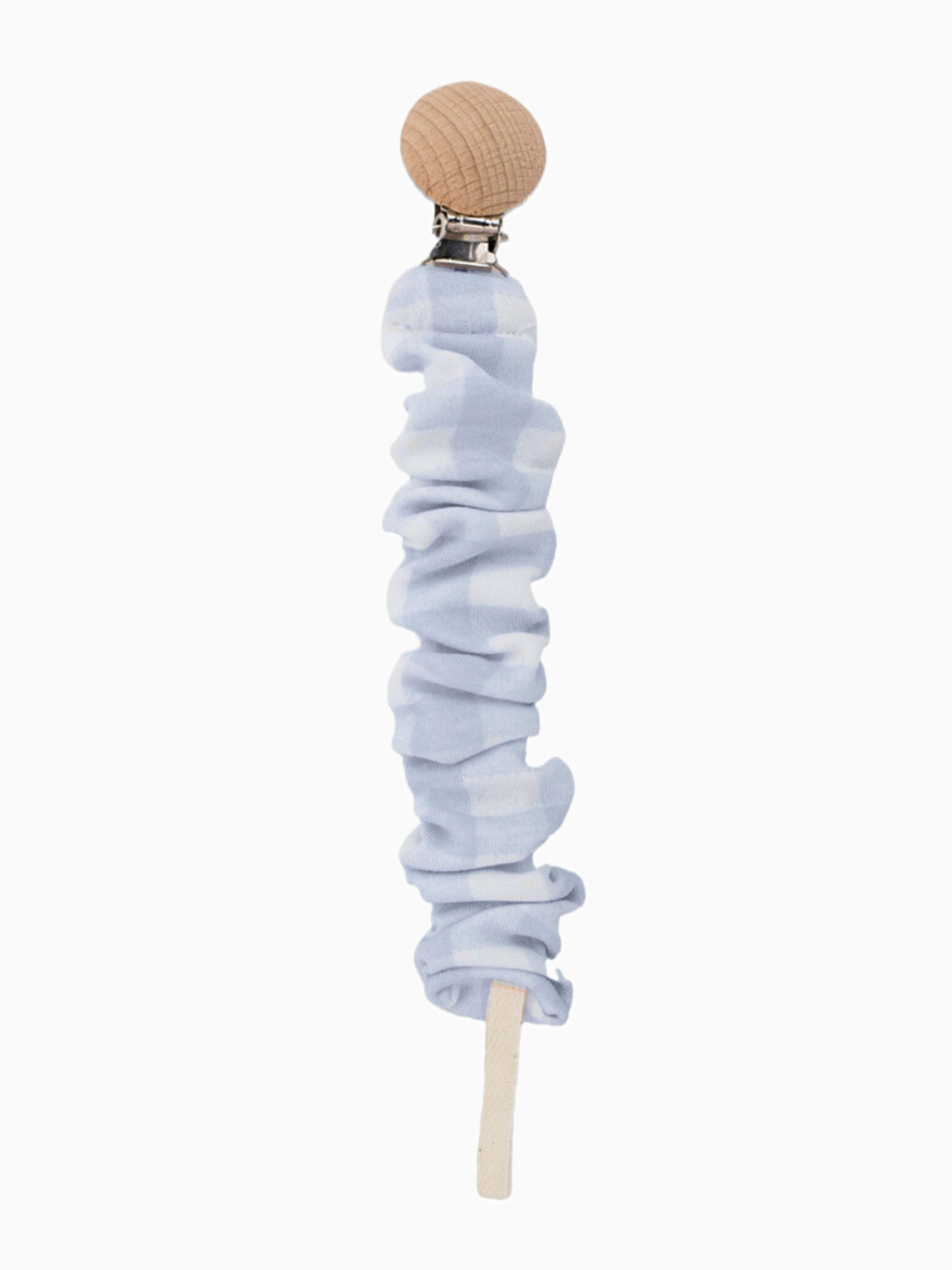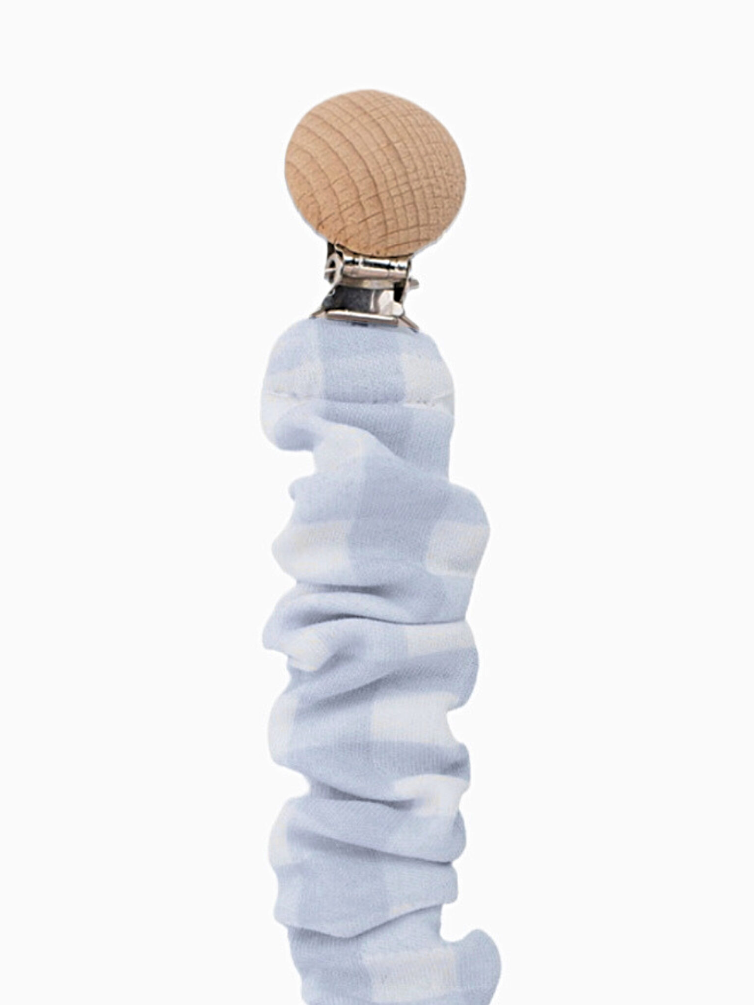 Petite, élégante et pleine de charme, cette attache-tétine vichy bleu est une idée de cadeau de naissance parfaite : à la fois utile, esthétique et durable.
