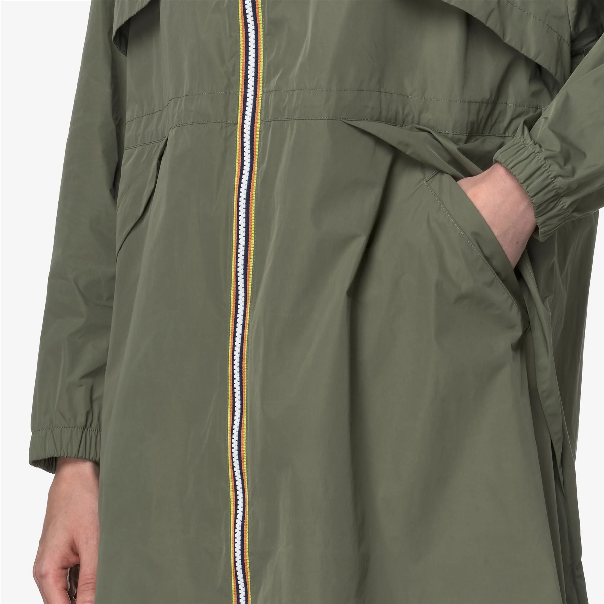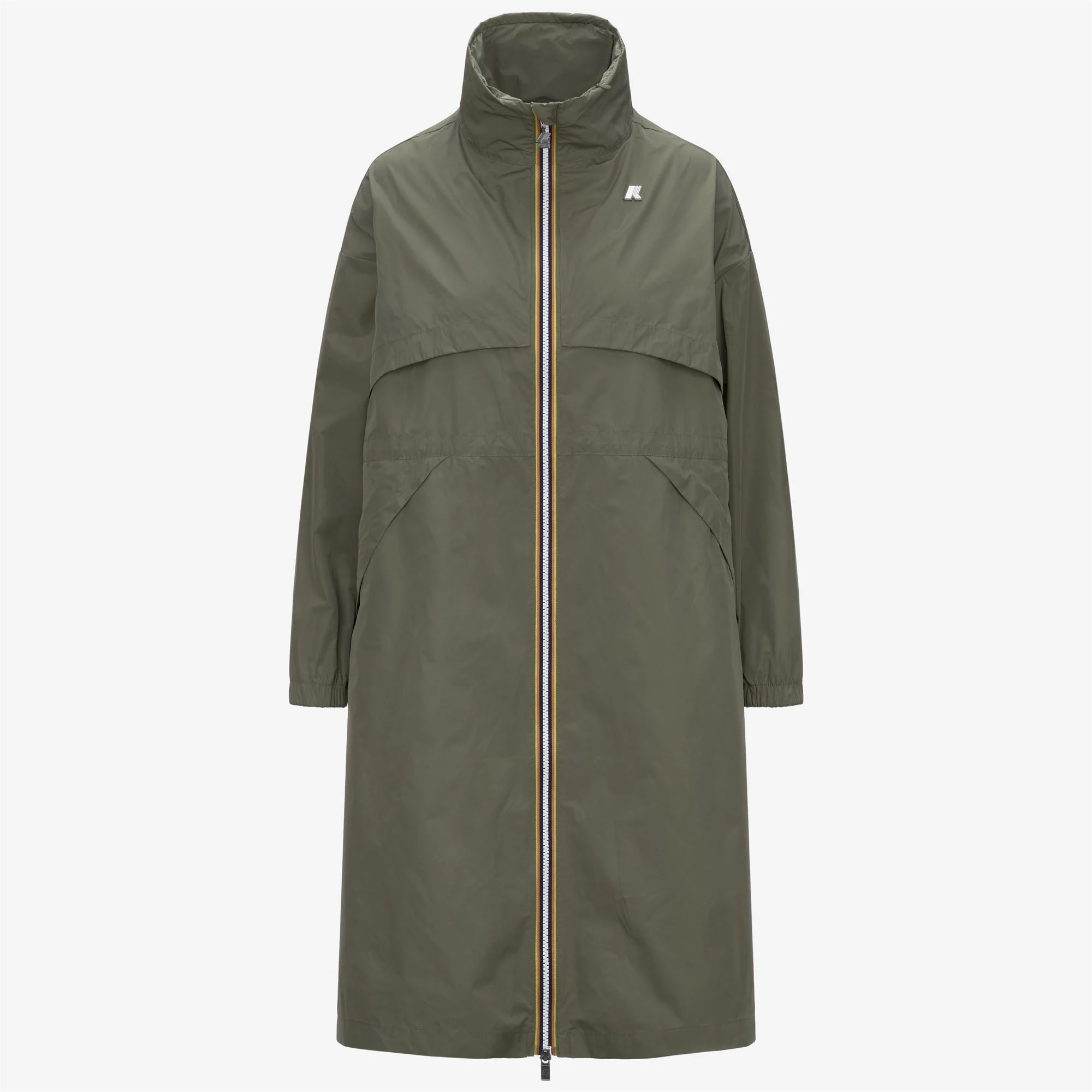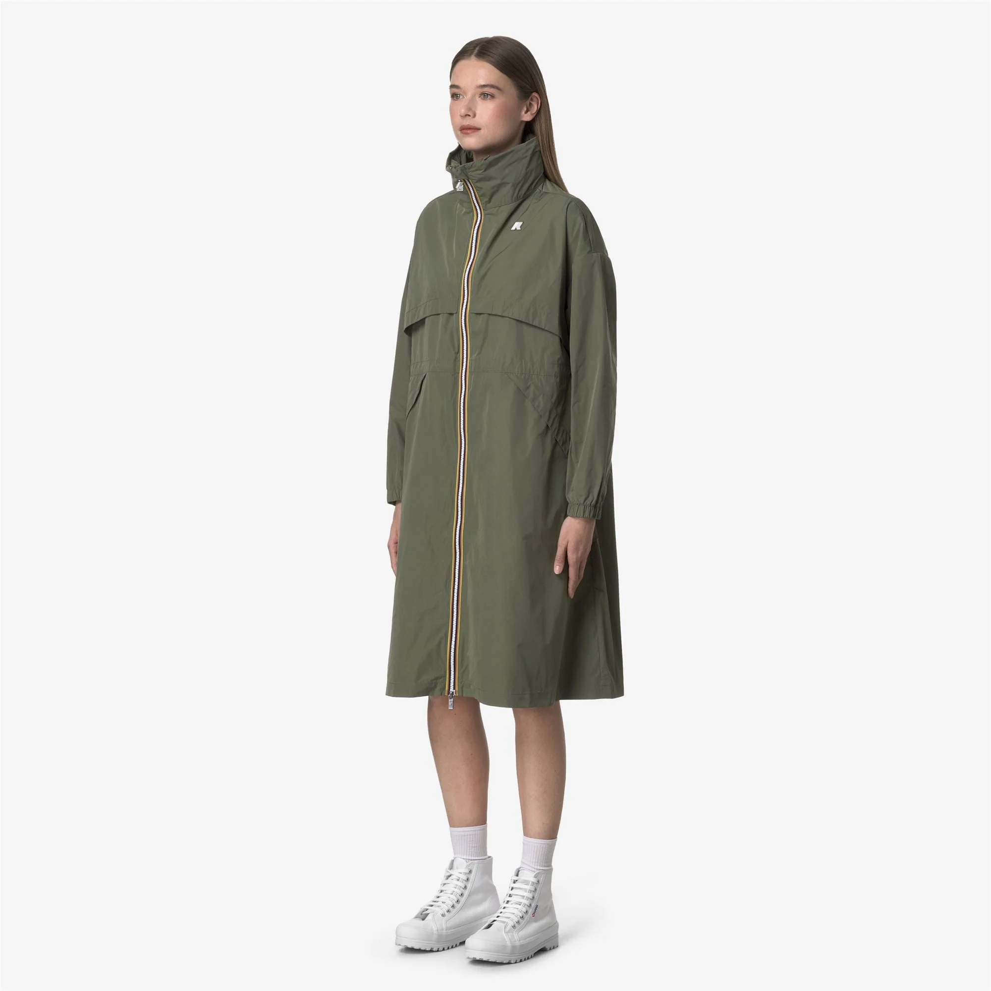 La veste Aube célèbre l’esprit sportif de la marque avec son tissu lisse et caoutchouté, combiné à une coupe longue. Ses détails oversize, comme les grandes poches et les larges rabats à l’avant, lui donnent un look moderne. Dotée d’une fermeture zippée aux couleurs emblématiques de K-Way, elle possède un col montant avec une capuche intégrée, des poignets élastiqués et d’un cordon ajustable à la taille, cette veste est à la fois pratique et stylée. –