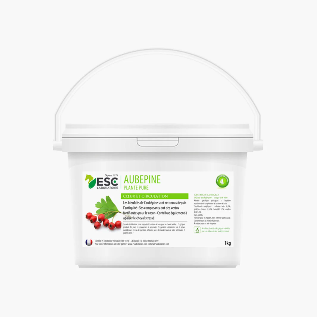 AUBEPINE | ESC est une formulation élaborée par les laboratoires ESC pour soutenir le cœur des chevaux et les aider à mieux gérer le stress et les efforts soutenus. Conçue pour les chevaux qui se fatiguent rapidement, cette association naturelle d’éléments active les mécanismes de contraction cardiaque et améliore la circulation, tout en favorisant une réponse au stress plus conforme à l’effort quotidien.