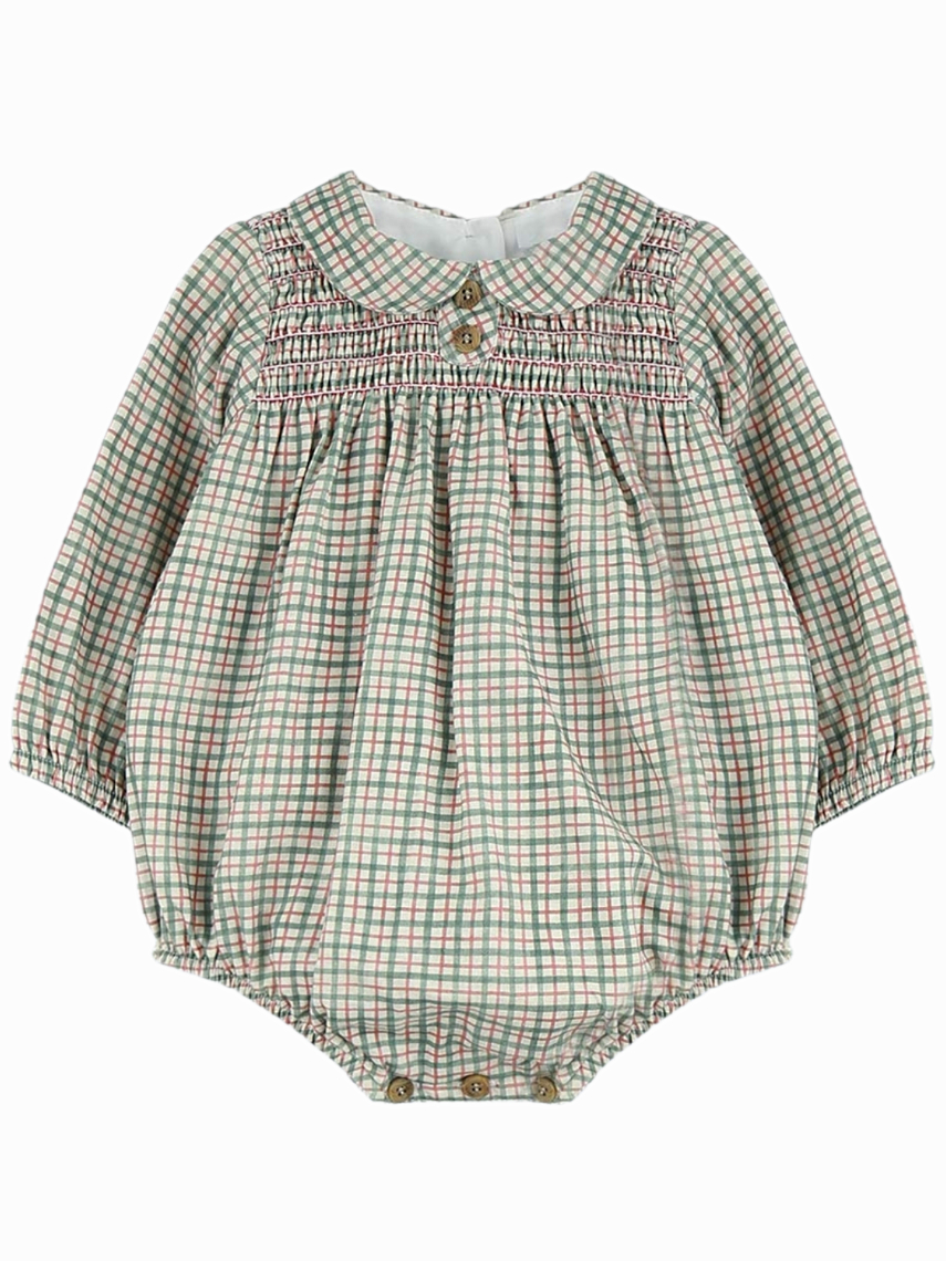 Barboteuse bébé à petits carreaux – Vert/rouge