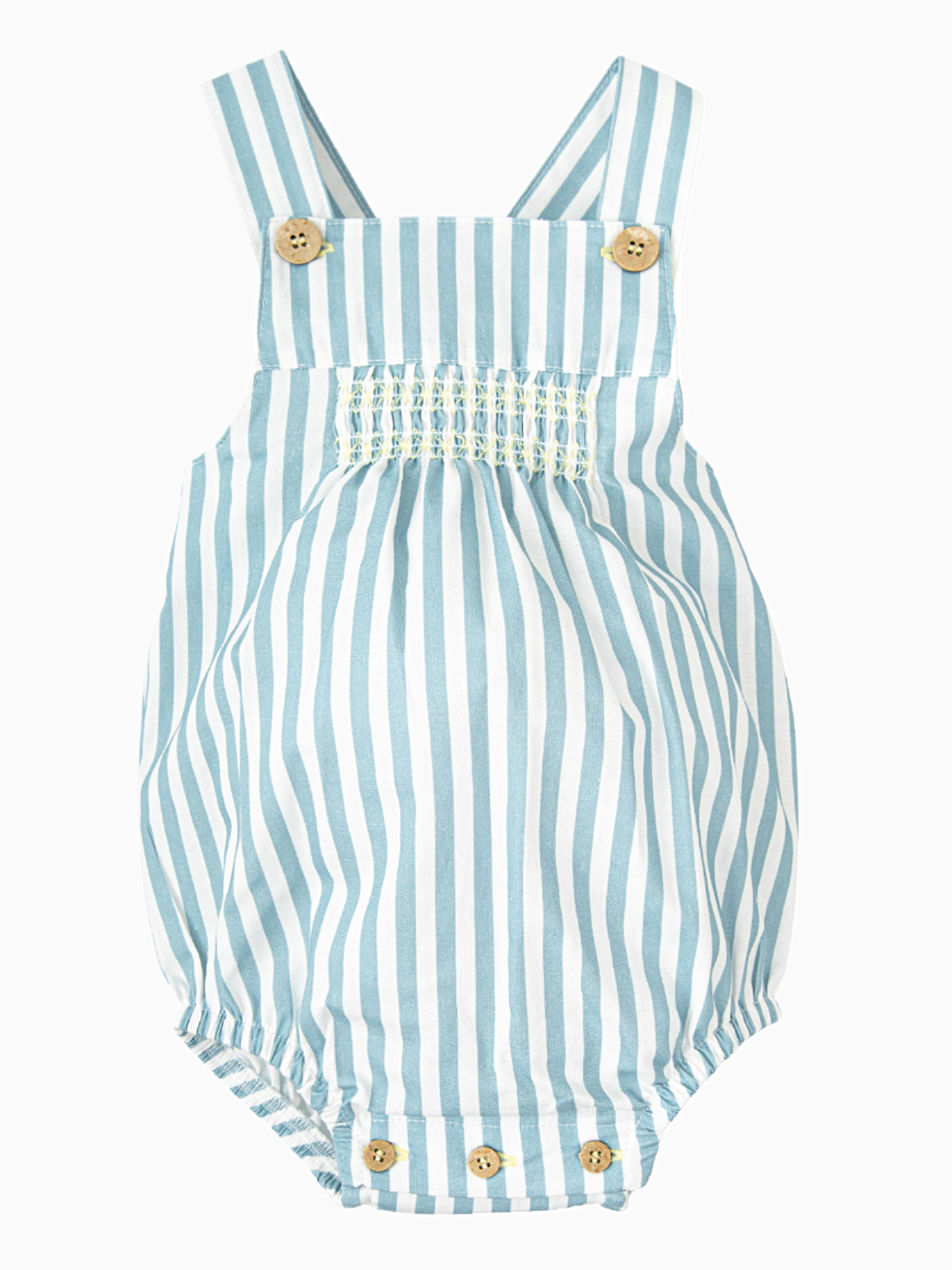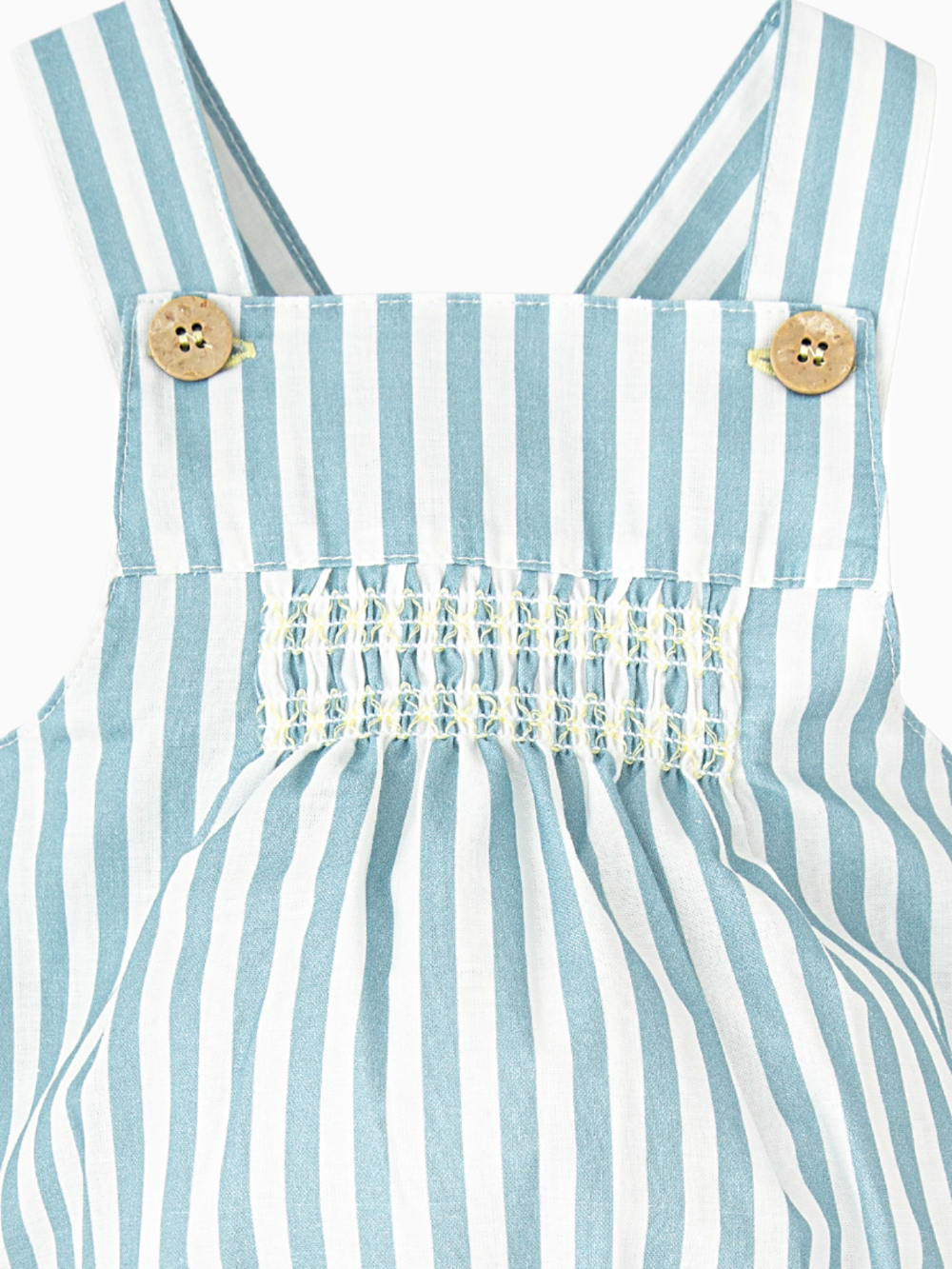Offrez à votre petit garçon une tenue à la fois charmante et confortable avec notre barboteuse rayée bleu Méditerranée et blanc. Confectionnée en 100 % coton, cette pièce légère et respirante est idéale pour les journées d’été. Ses rayures nautiques élégantes évoquent la douceur des vacances, tandis que le détail de smocks jaunes délicatement brodés sur le devant ajoute une note de raffinement.