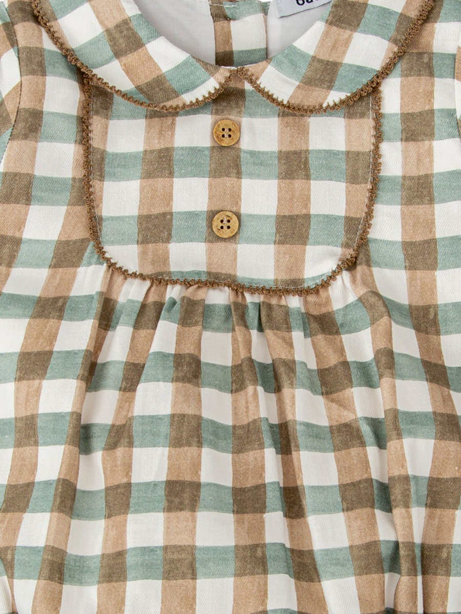 Barboteuse bébé mixte à carreaux – Vert/camel
