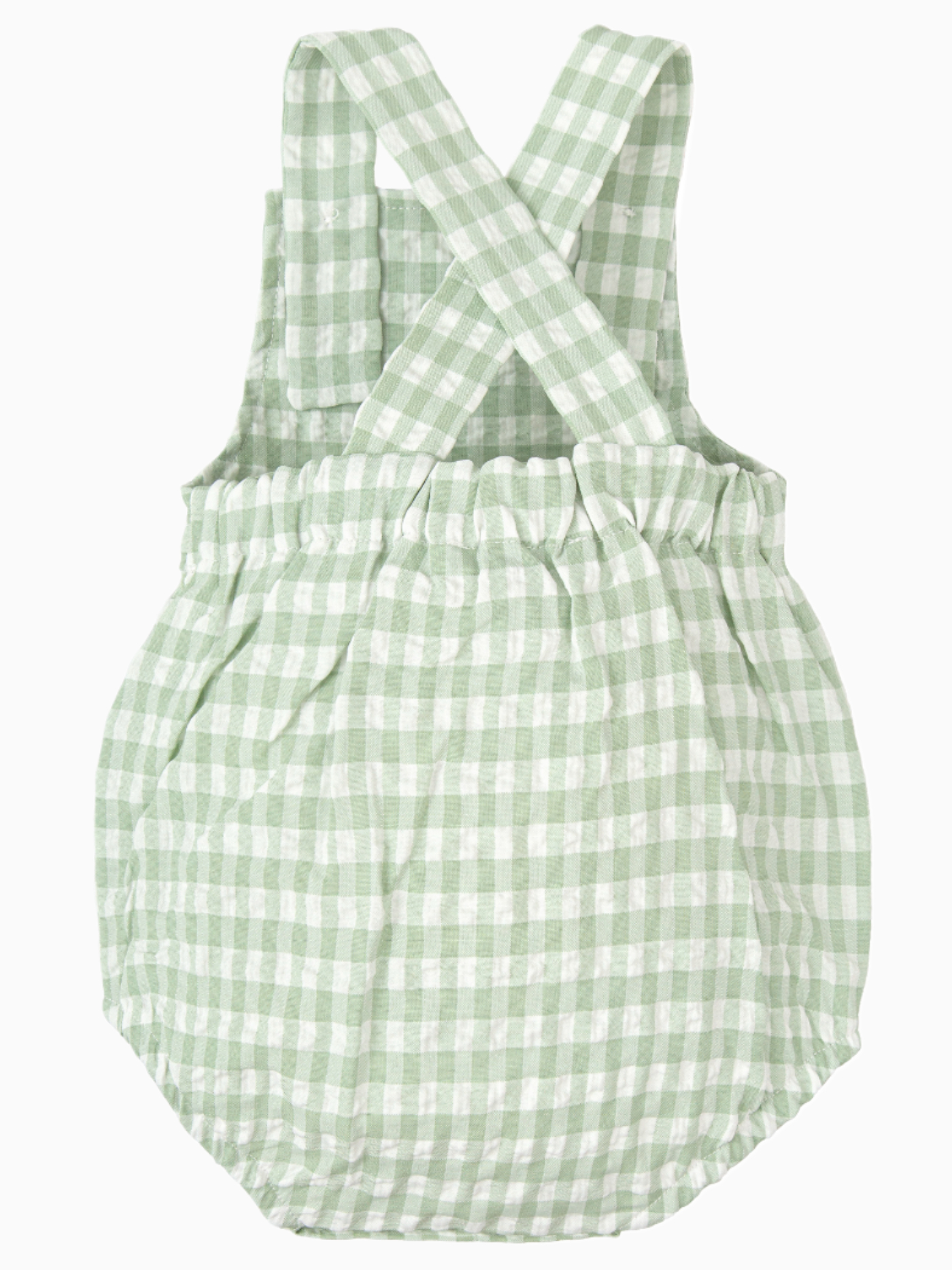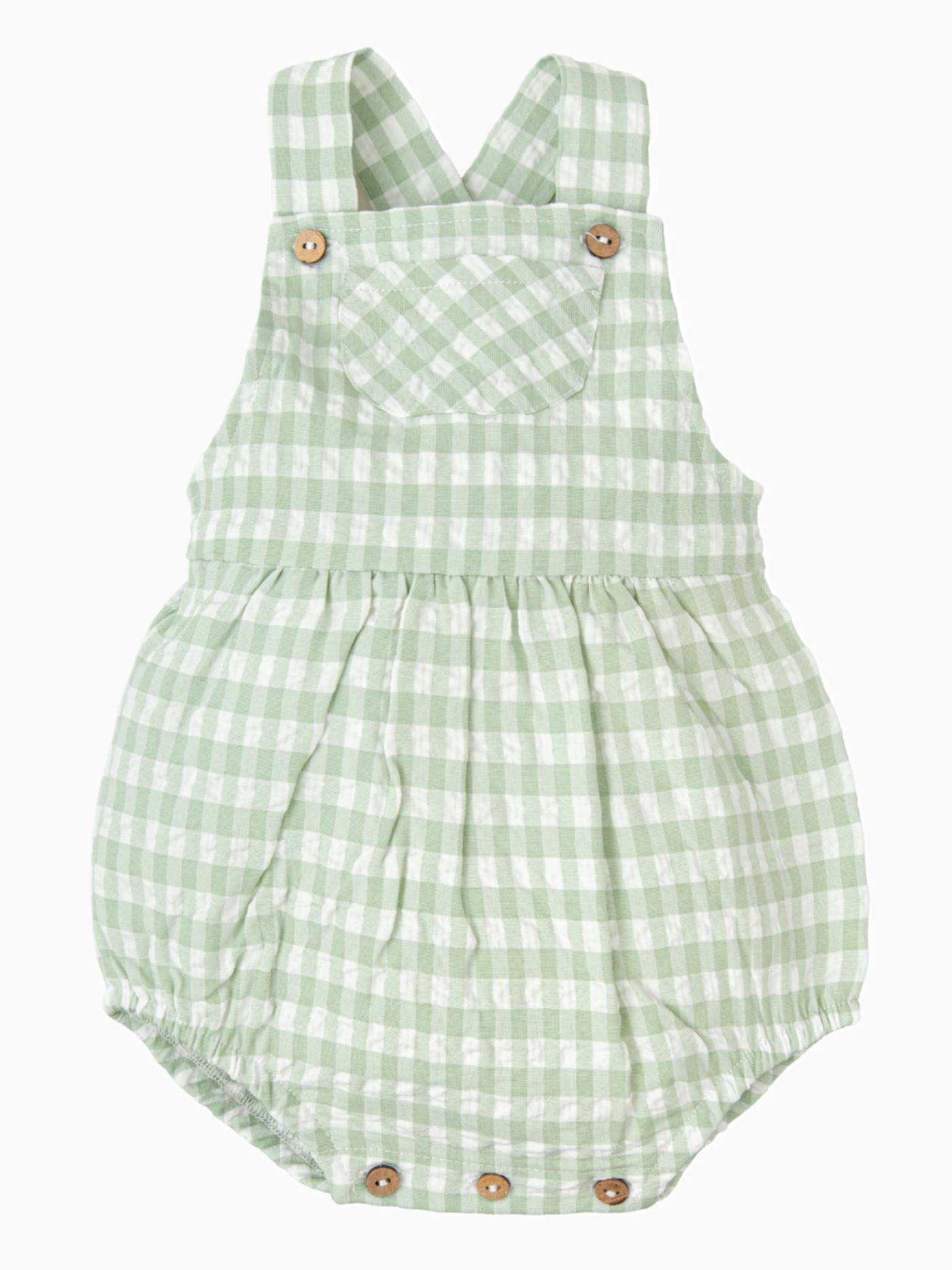 Offrez à votre bébé un look à la fois pratique et adorable avec notre barboteuse bébé vichy à bretelles. Confectionnée dans un joli tissu vichy vert, cette pièce allie confort et style pour les journées ensoleillées ou les moments plus habillés. Elle se distingue par ses détails raffinés et sa coupe légèrement bouffante.