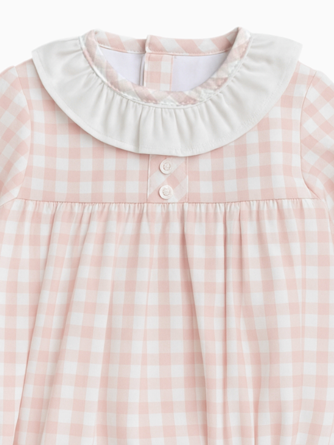 Grâce à son style élégant, cette barboteuse vichy rose se porte aussi bien au quotidien que pour des moments plus habillés. Elle est idéale pour une promenade en famille, une cérémonie ou une séance photo. Associez-la à notre collant bébé uni – crème et à un petit cardigan pour une tenue encore plus adorable et complète.