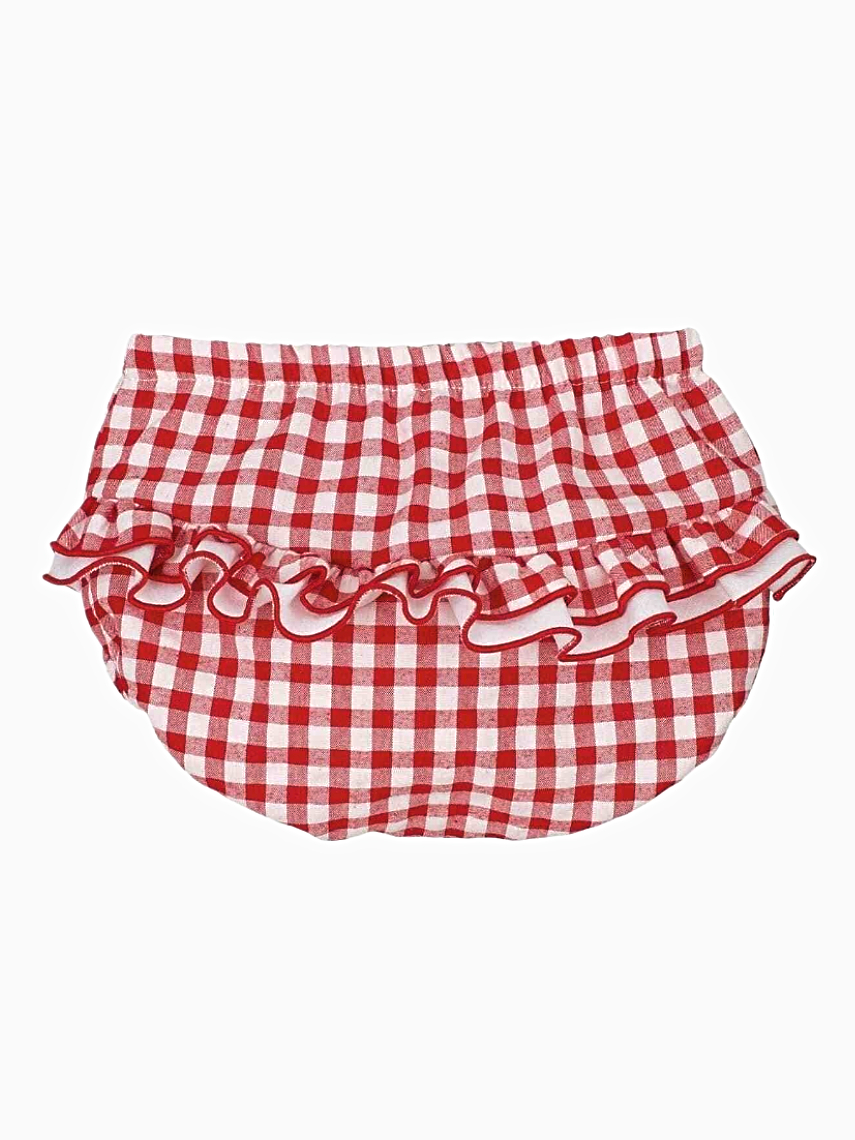 Égayez le dressing de votre petite princesse avec notre adorable bloomer bébé fille vichy rouge et blanc à froufrous, une pièce pleine de charme et d’élégance. Confectionné avec soin en Espagne, ce bloomer reflète l’excellence artisanale et l’amour du détail, parfait pour accompagner votre bébé lors de moments précieux. Les carreaux vichy rouges et blancs, véritables icônes de la mode rétro, sont sublimés par des volants délicats à l’arrière qui ajoutent une touche féminine et espiègle.