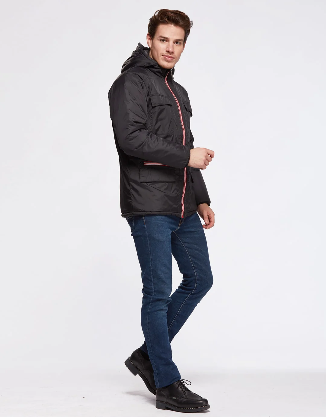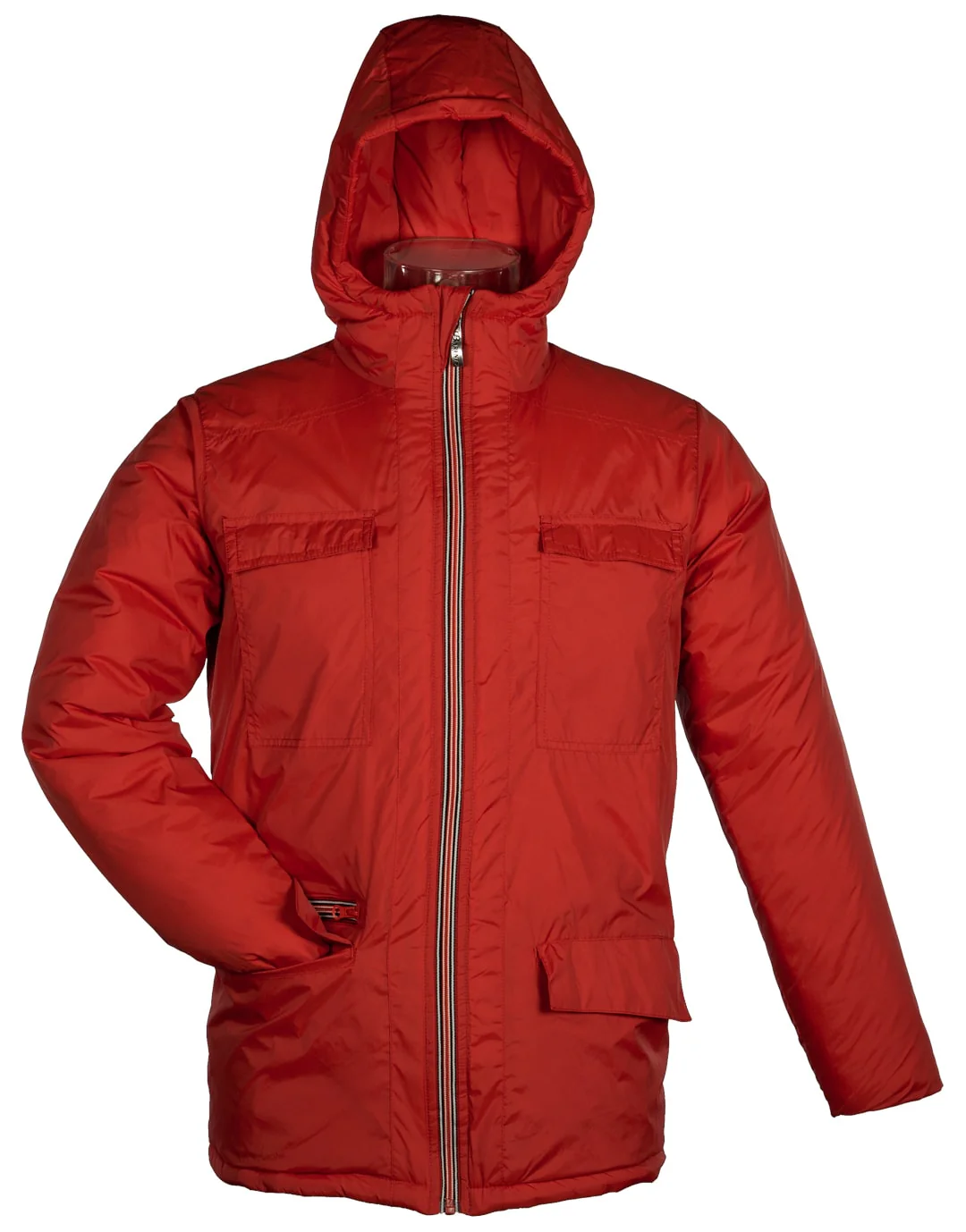 La deuxième quant à elle a deux poches plaquées sur la poitrine et deux poches plaquées à la taille ainsi qu’une poche zippée, de même le zip est de couleur différente et la doublure est synthétique. Le zip est invisible sur le côté droit pour la personnalisation.