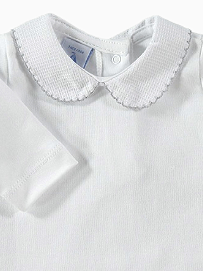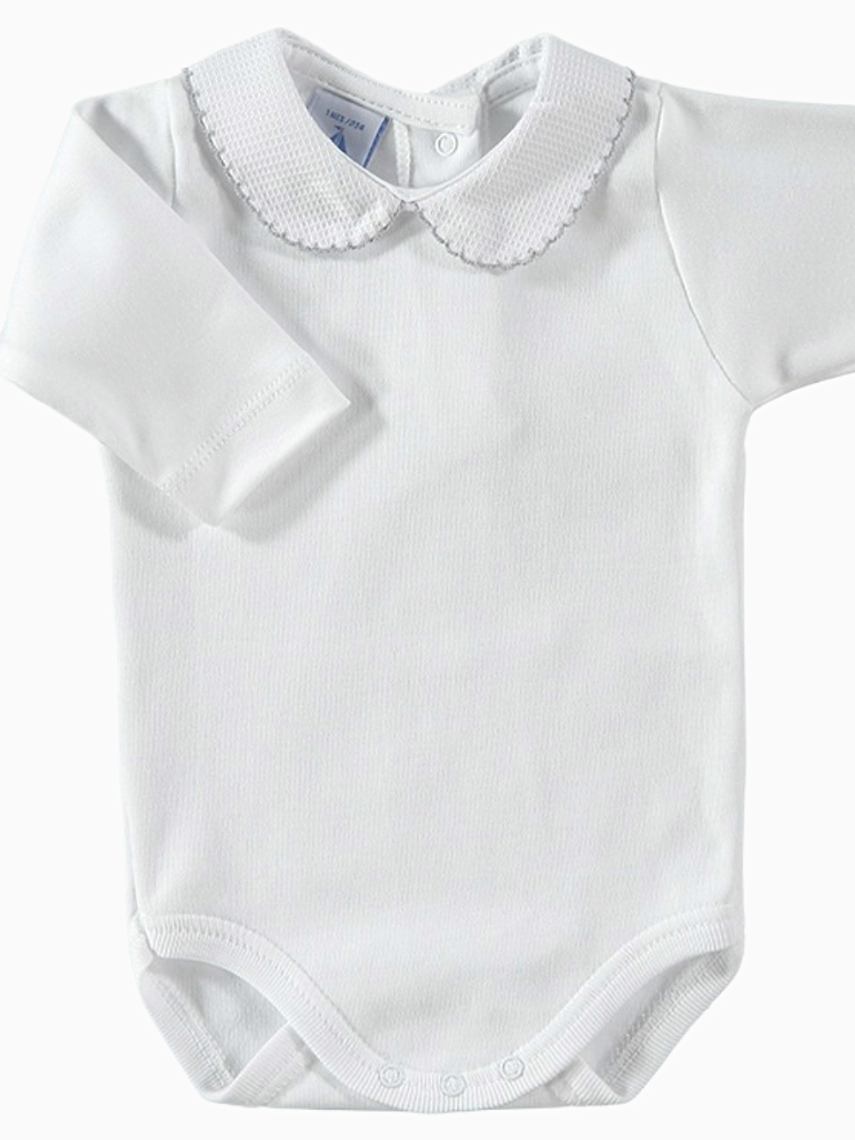 Confectionné avec soin en Espagne, ce body témoigne du savoir-faire et de la qualité exceptionnels des fabricants européens. La texture raffinée du col rond ajoute une dimension unique à ce vêtement, lui conférant une allure distinguée. Les manches longues sont idéales pour les journées fraîches, offrant à votre bébé chaleur et confort tout en restant stylé.