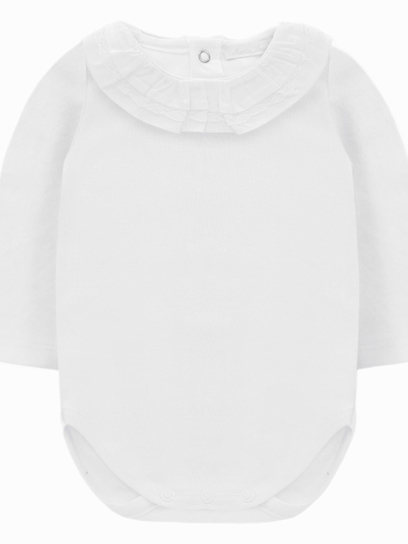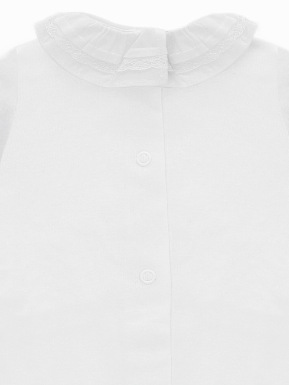 Col froncé à dentelle Fermé par des boutons-pression dans le dos Boutons-pression à l’entrejambe 100% coton Fabriqué en Espagne Ce body taille normalement. Choisissez la taille habituelle.