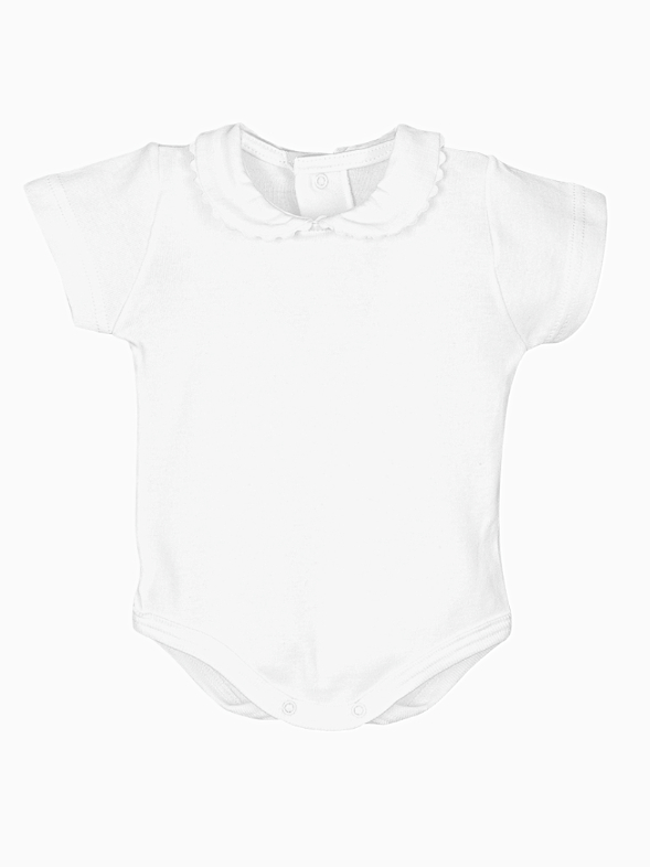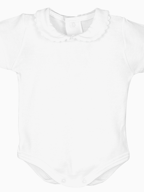 Le col rond fantaisie, sublimé par une bordure dentelée raffinée, ajoute une note de sophistication subtile à ce vêtement classique. Ce détail soigné transforme un body simple en une pièce élégante, idéale pour habiller votre petite princesse avec grâce et style. Les manches courtes rendent ce body léger et confortable, parfait pour les journées chaudes ou comme base pour des tenues superposées.