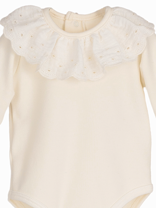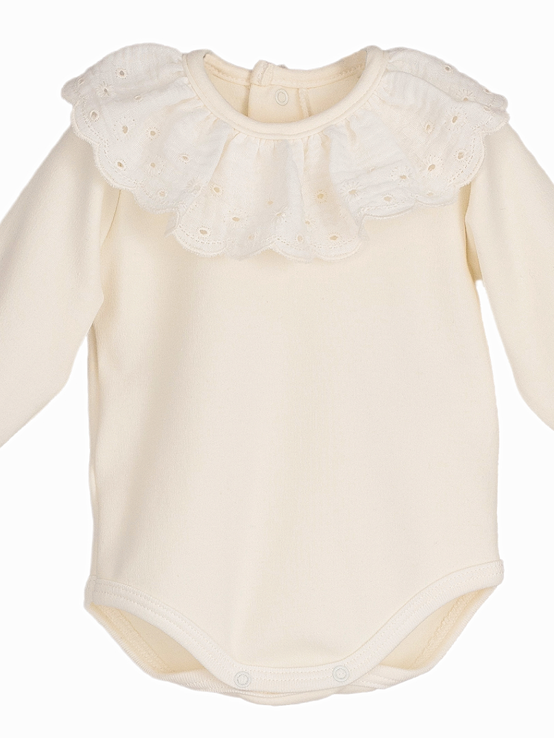 Body bébé fille à grande collerette brodée – Ecru
