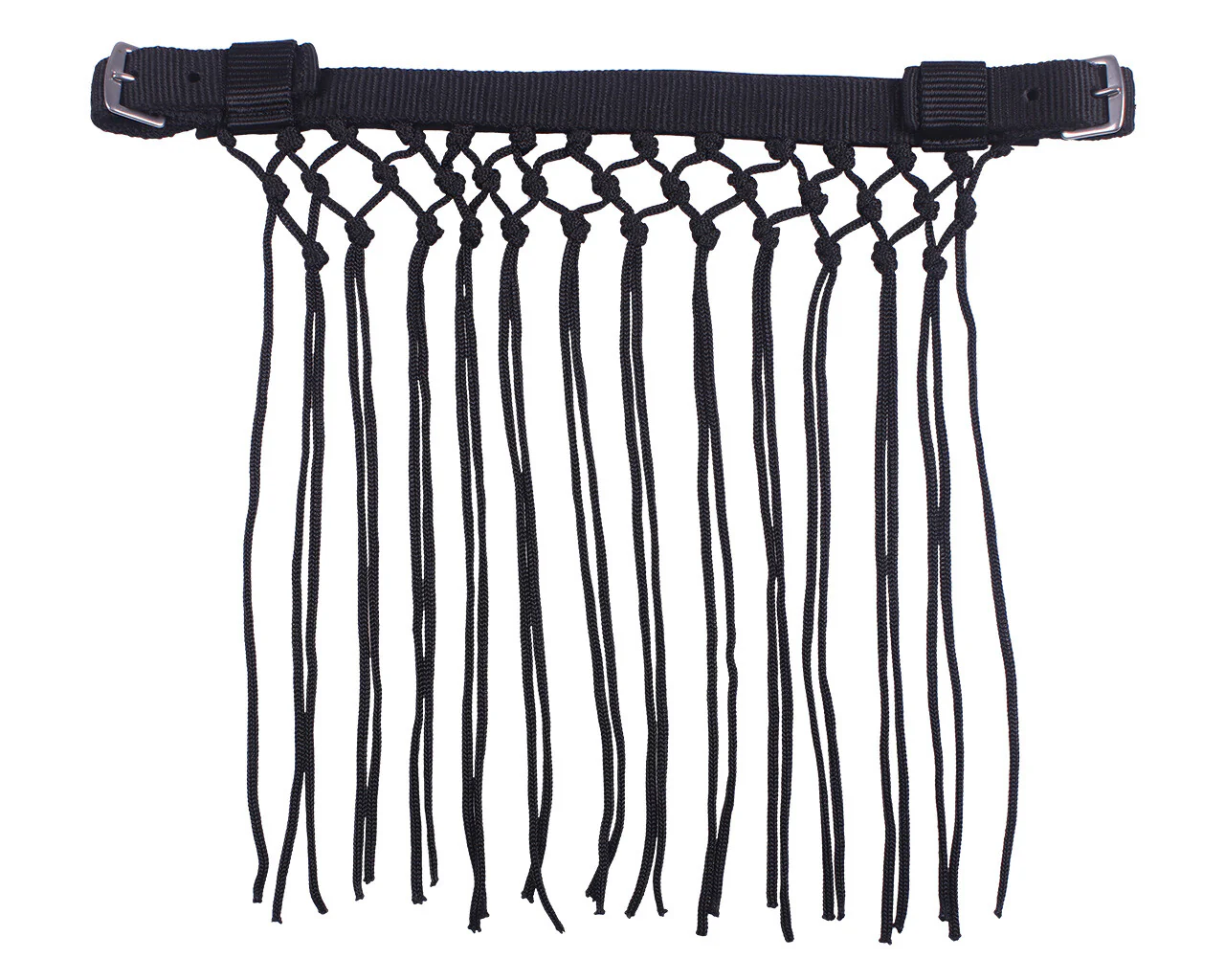 Avec le frontal anti-mouches, votre cheval peut éloigner les mouches de sa tête. Cette frange nouée se fixe facilement au licol au moyen de deux boucles.