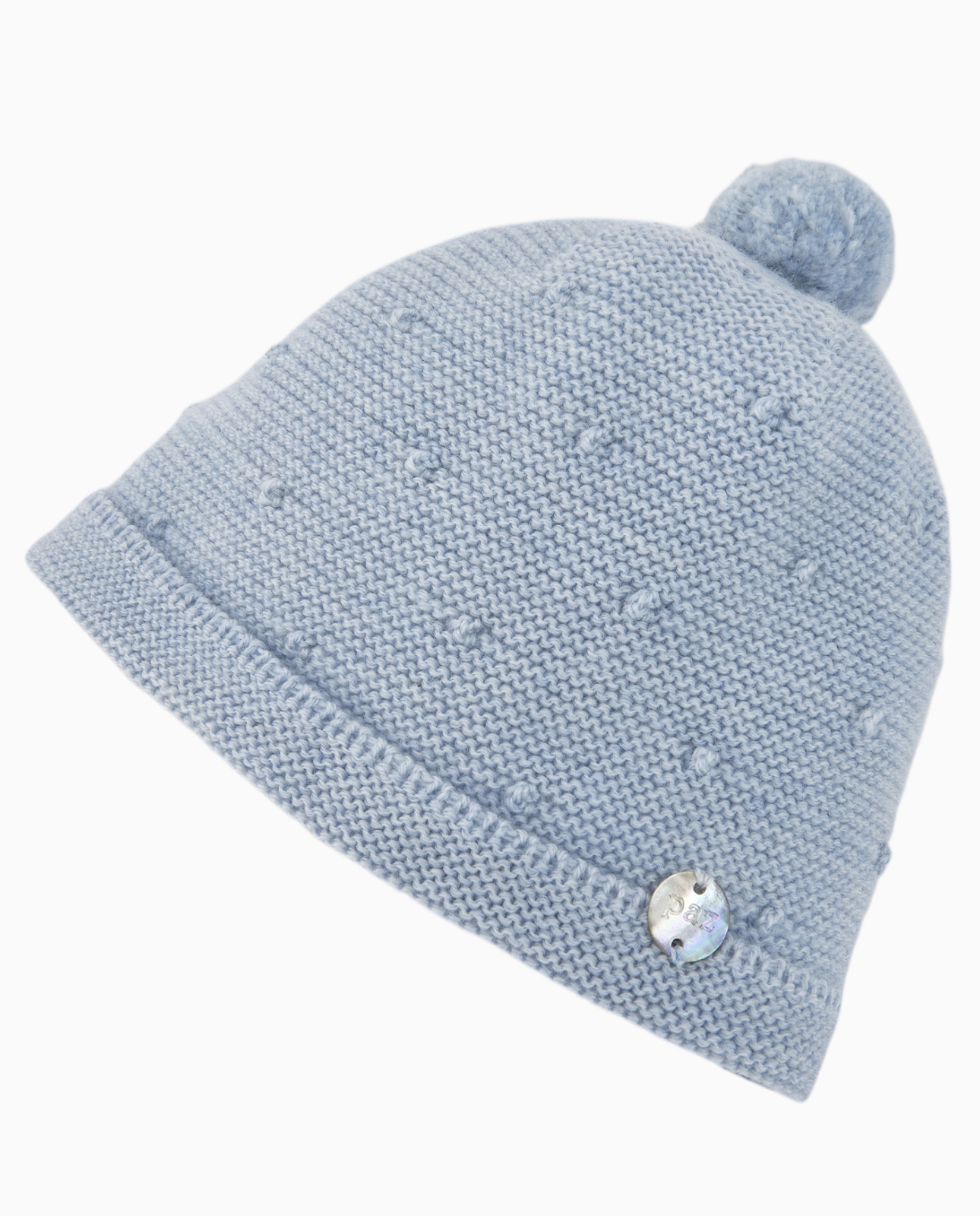 Bonnet naissance à pompon en laine – Bleu