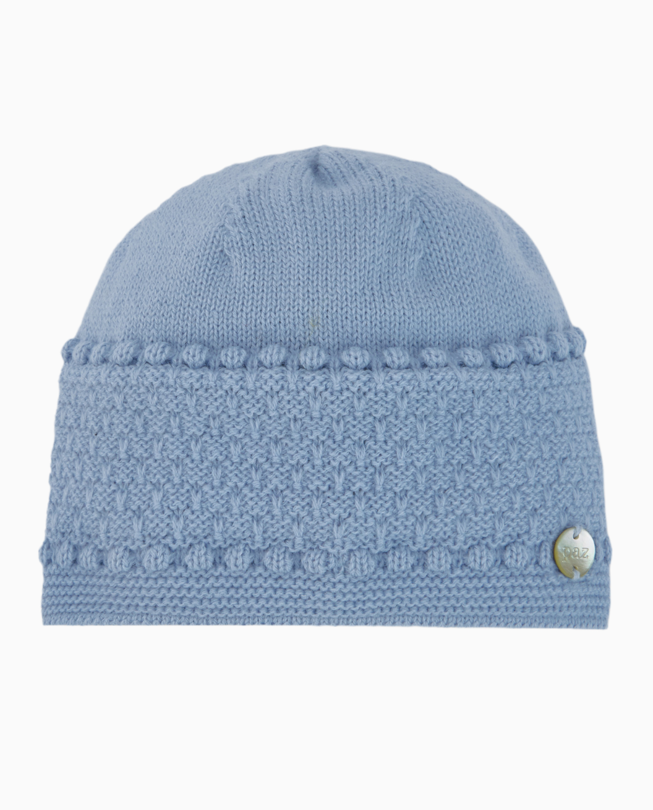 Bonnet naissance en laine bleu ciel – Douceur et élégance pour les premiers mois