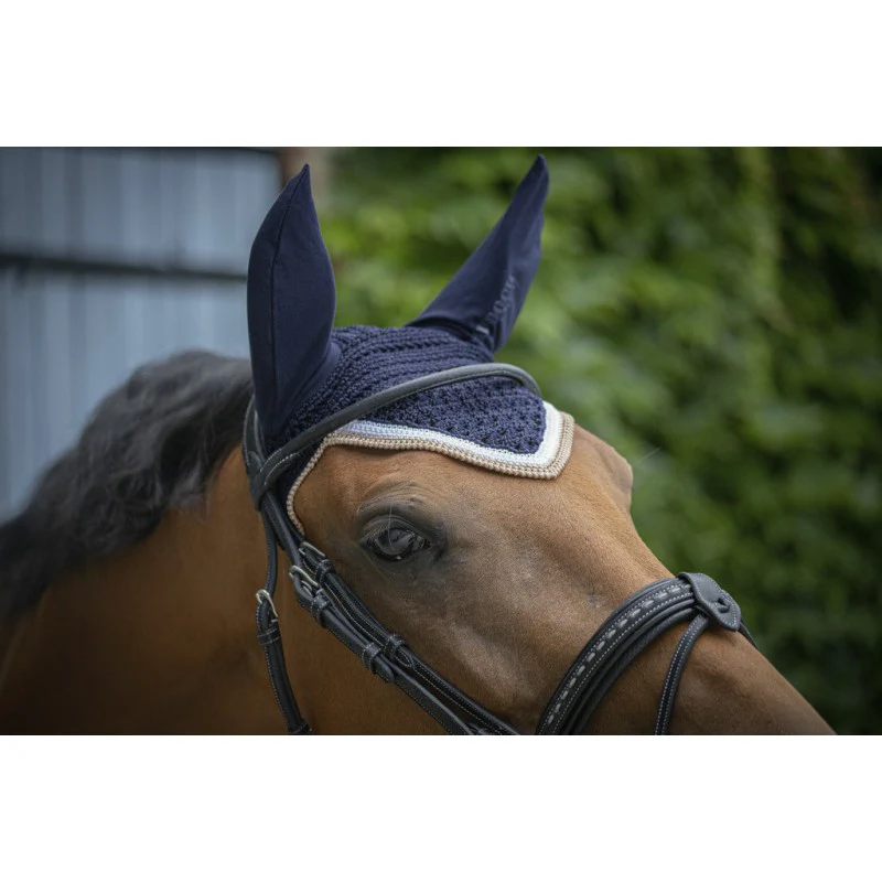 Tissage assez épais qui se pose parfaitement sur la tête du cheval. Jolie coupe en V.Oreilles stretch pour s’adapter à toutes les morphologies.