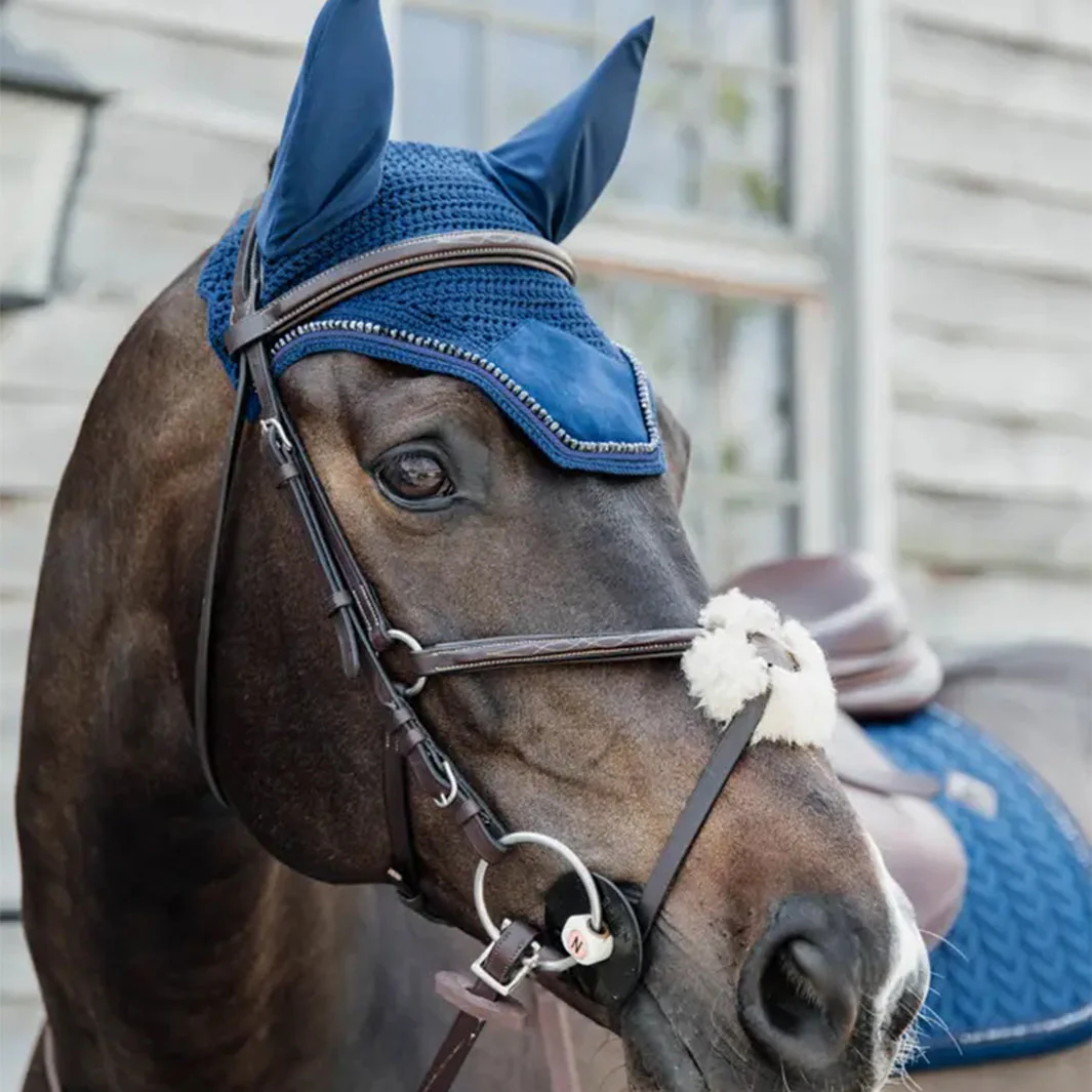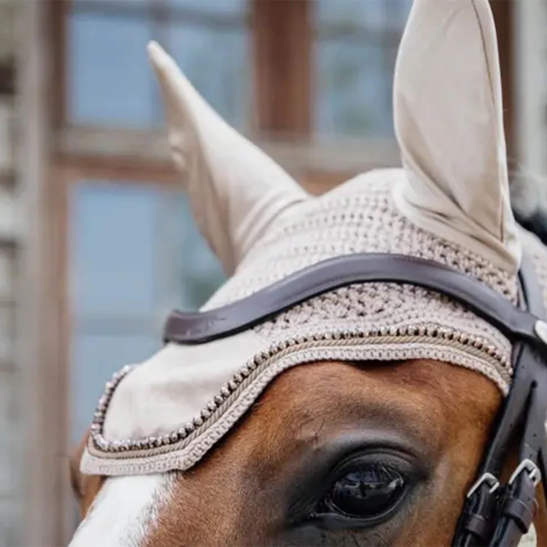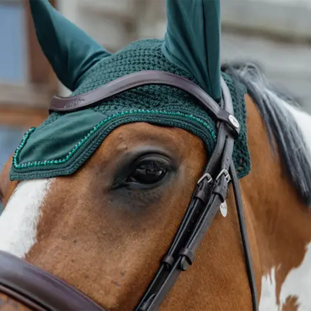 Découvrez le BONNET WELLINGTON VELVET PEARLS de Kentucky, l’alliance parfaite entre raffinement et performance pour votre cheval. Orné de velours et de perles, il incarne un style premium qui se démarque sur le manège comme en compétition, tout en protégeant les oreilles des mouches et les zones sensibles pendant le travail.