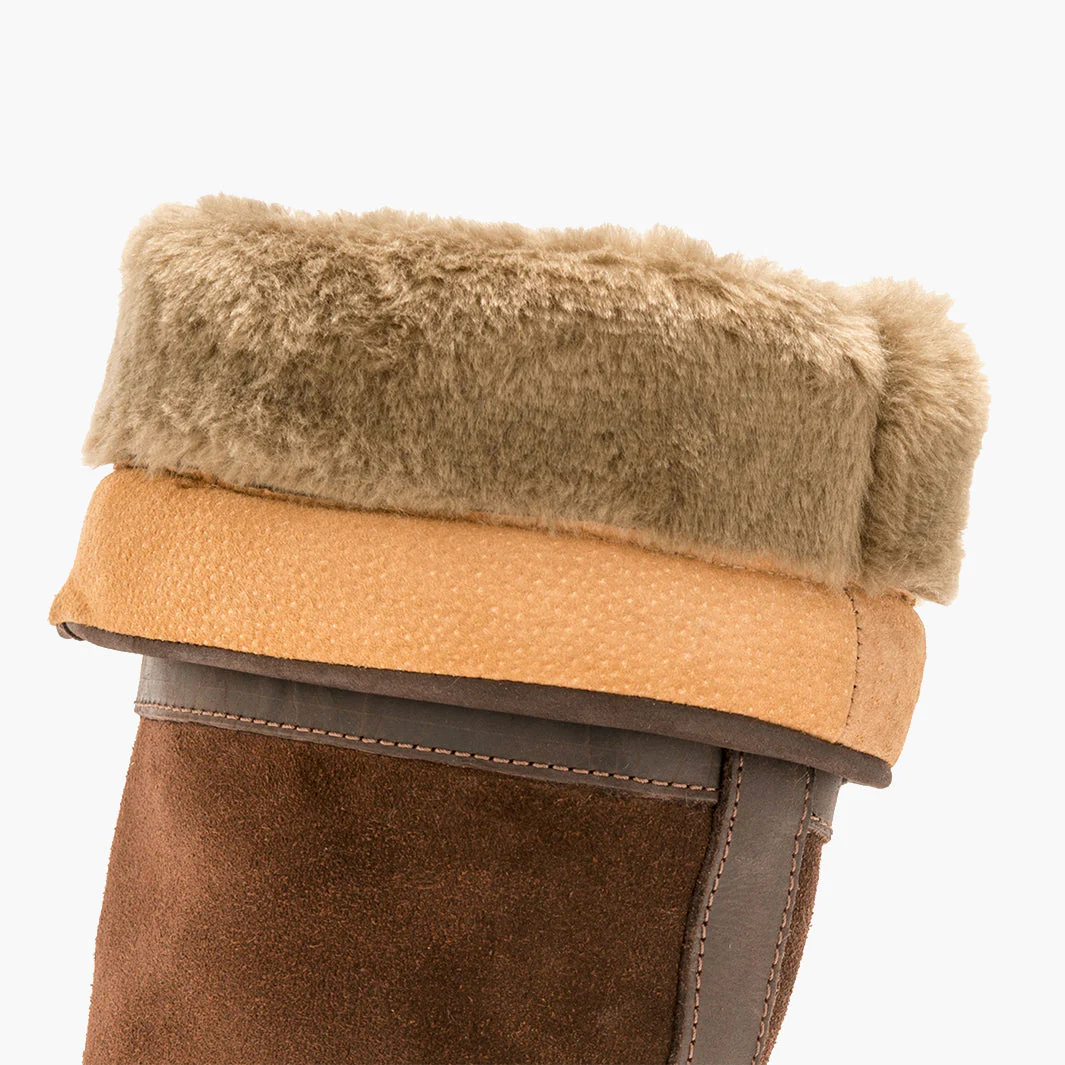 À l’intérieur, la doublure en fourrure de mouton agit comme un régulateur thermique: la peau de mouton est intrinsèquement thermostatique, ce qui permet de garder vos pieds à leur température corporelle naturelle, peu importe le froid extérieur. Résultat: chaleur homogène, confort durable et zéro sensation de froid.