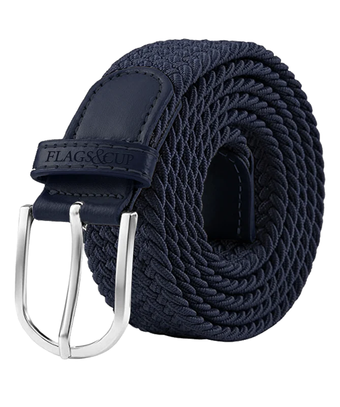 La ceinture élastique est pratique et élégante. Elle s’adapte à la majorité des pantalons à passants standards. Son élasticité la rend très confortable. Ceinture tressée en élastiques tricolores avec boucle rectangulaire aux bords arrondis. Les extrémités sont en cuir synthétique. Le passant est embossé Flags&Cup.