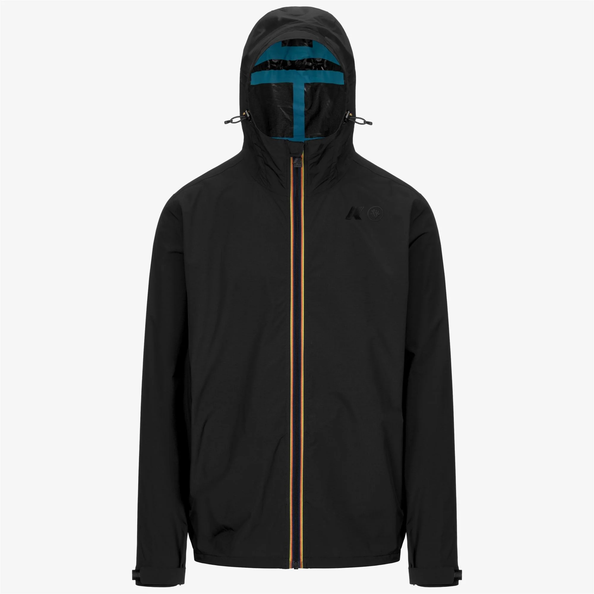 Charmel est une veste pliable avec capuche, fabriquée en tissu en nylon ripstop recyclé. Elle a une coupe régulière. La capuche et l’ourlet sont ajustables avec un cordon élastique réfléchissant, et les poignets sont ajustables avec un rabat personnalisé arborant le ruban K-WAY. La veste a deux poches latérales avec fermetures éclair. Les coutures internes sont thermocollées avec du ruban bleu clair. Elle est personnalisée avec le logo K-WAY x CORAL GARDENERS.