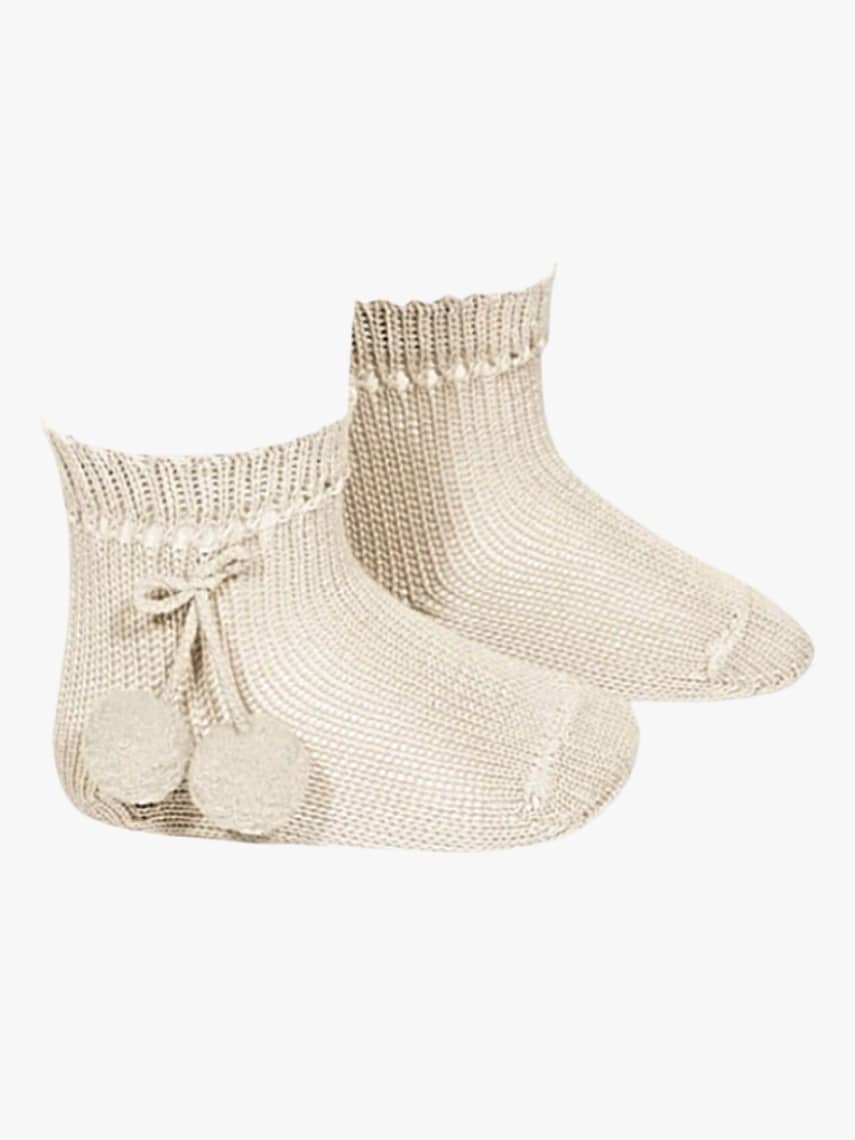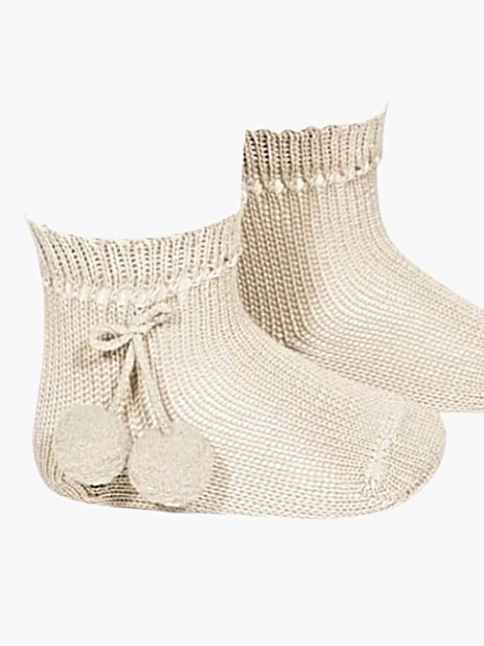 Fabriquées avec soin pour assurer un ajustement parfait, ces chaussettes beiges à pompons enveloppent délicatement les pieds de votre bébé, offrant un confort optimal tout au long de la journée. Les pompons ajoutent une note ludique, égayant chaque tenue. Que ce soit pour une journée décontractée à la maison ou une sortie spéciale en famille, ces chaussettes beiges à pompons sont le choix idéal pour un style sans effort.