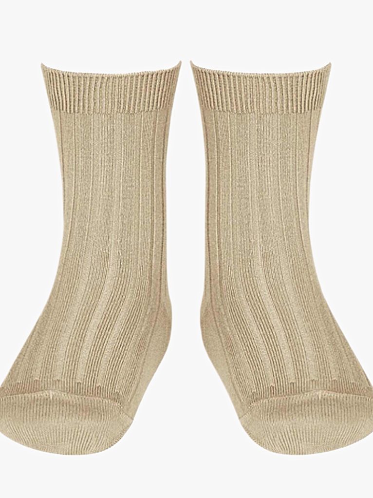 Chaussettes bébé courtes côtelées – Beige
