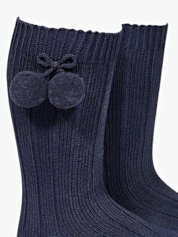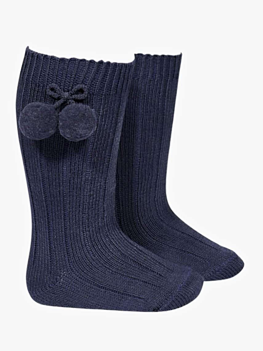 Chaussettes bébé hautes à pompons en coton chaud – Bleu marine