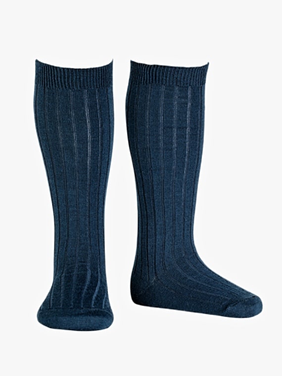 Chaussettes bébé hautes en laine mérinos – Bleu marine