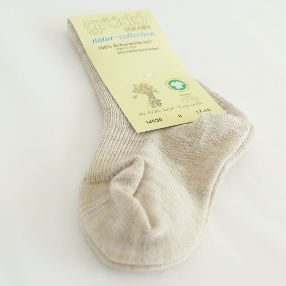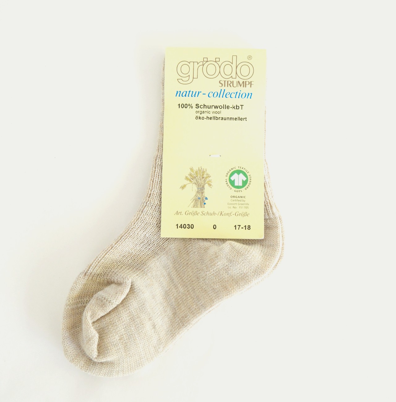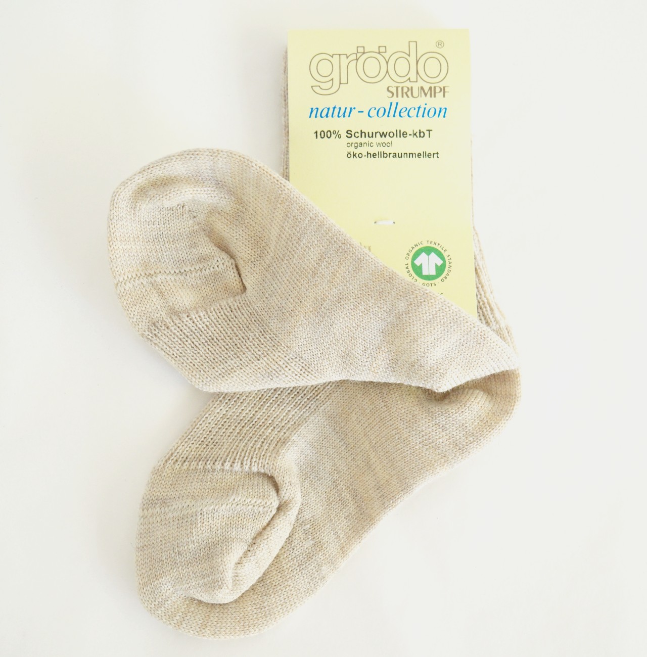 Chaussettes fines enfant en laine mérinos bio – beige Grödo