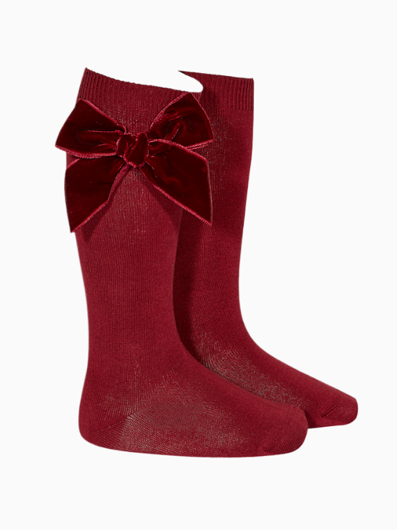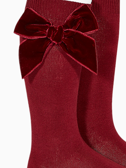 Chaussettes hautes bébé fille à noeud velours – Bordeaux