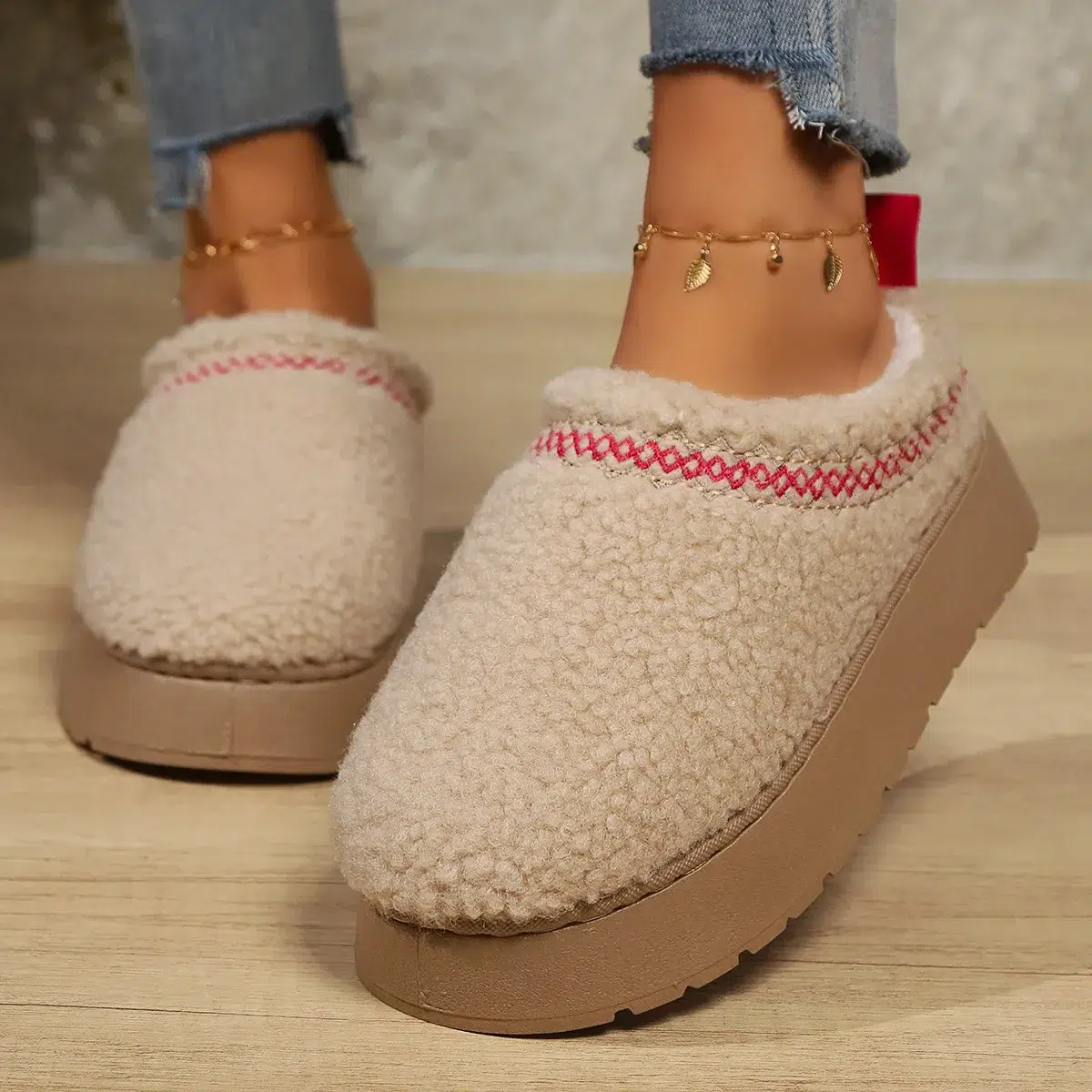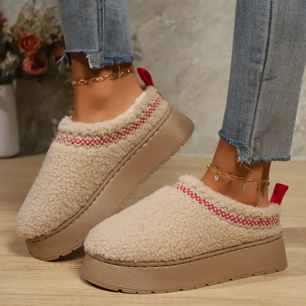- La doublure en peluche maintient vos pieds au chaud, idéal pour les jours froids.