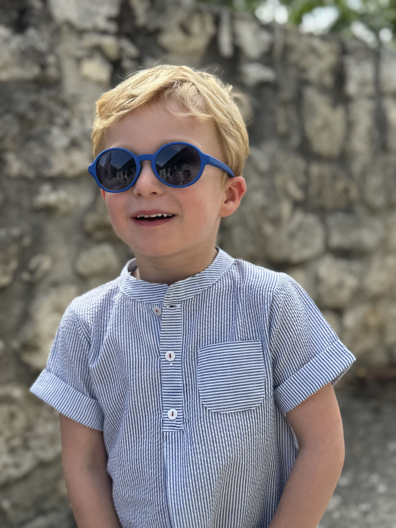 Pratique et facile d’entretien, cette chemise garçon manches courtes à col mao rayée bleu ciel et blanc est une pièce polyvalente qui s’accorde également avec des pantalons ou des bermudas. Offrez à votre enfant un look chic et intemporel avec cette chemise rayée parfaite pour la saison estivale !