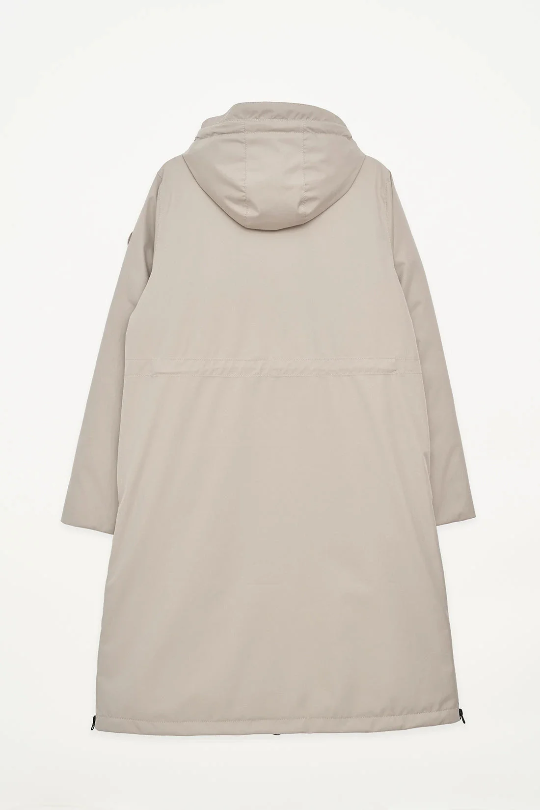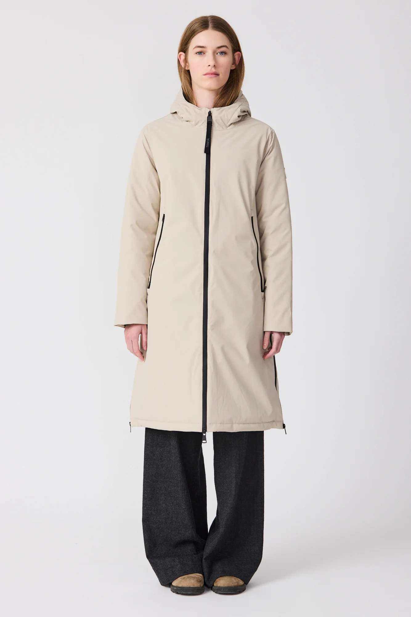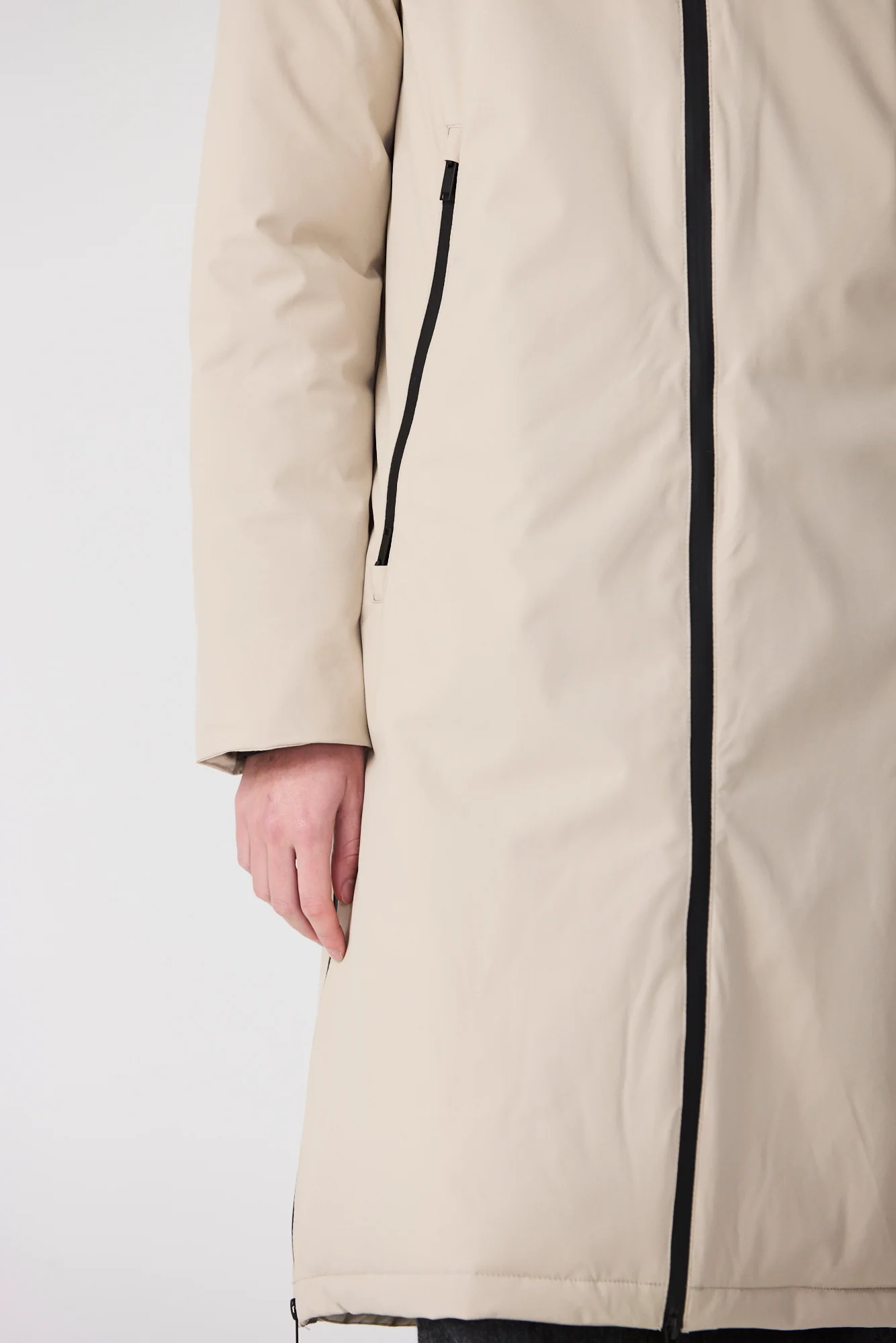 Sigue con tu día sin importar el tiempo que haga. Confeccionado en tejido de sarga de poliéster y acolchado con una capa aislante transpirable y sin plumas, el abrigo Cher tiene una silueta larga en forma de A y todas las costuras están selladas para ofrecer una protección superior. Con bolsillos con cremalleras largas impermeables de doble cursor, se cierra mediante una cremallera impermeable y está acabada con correas interiores tipo mochila para llevar la prenda con las manos libres. Garantiza un ajuste personalizado con una cintura ajustable con cordón en la espalda.