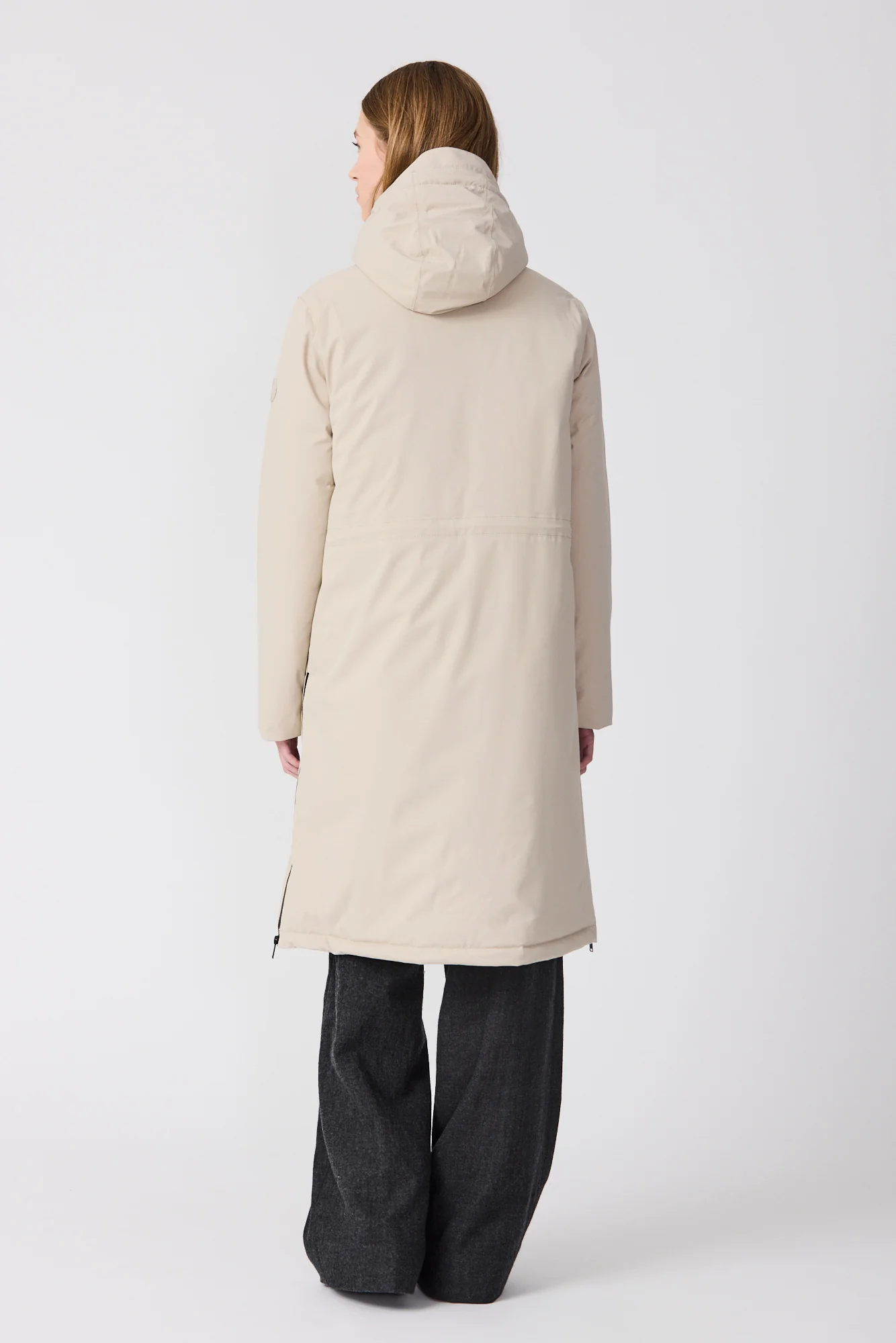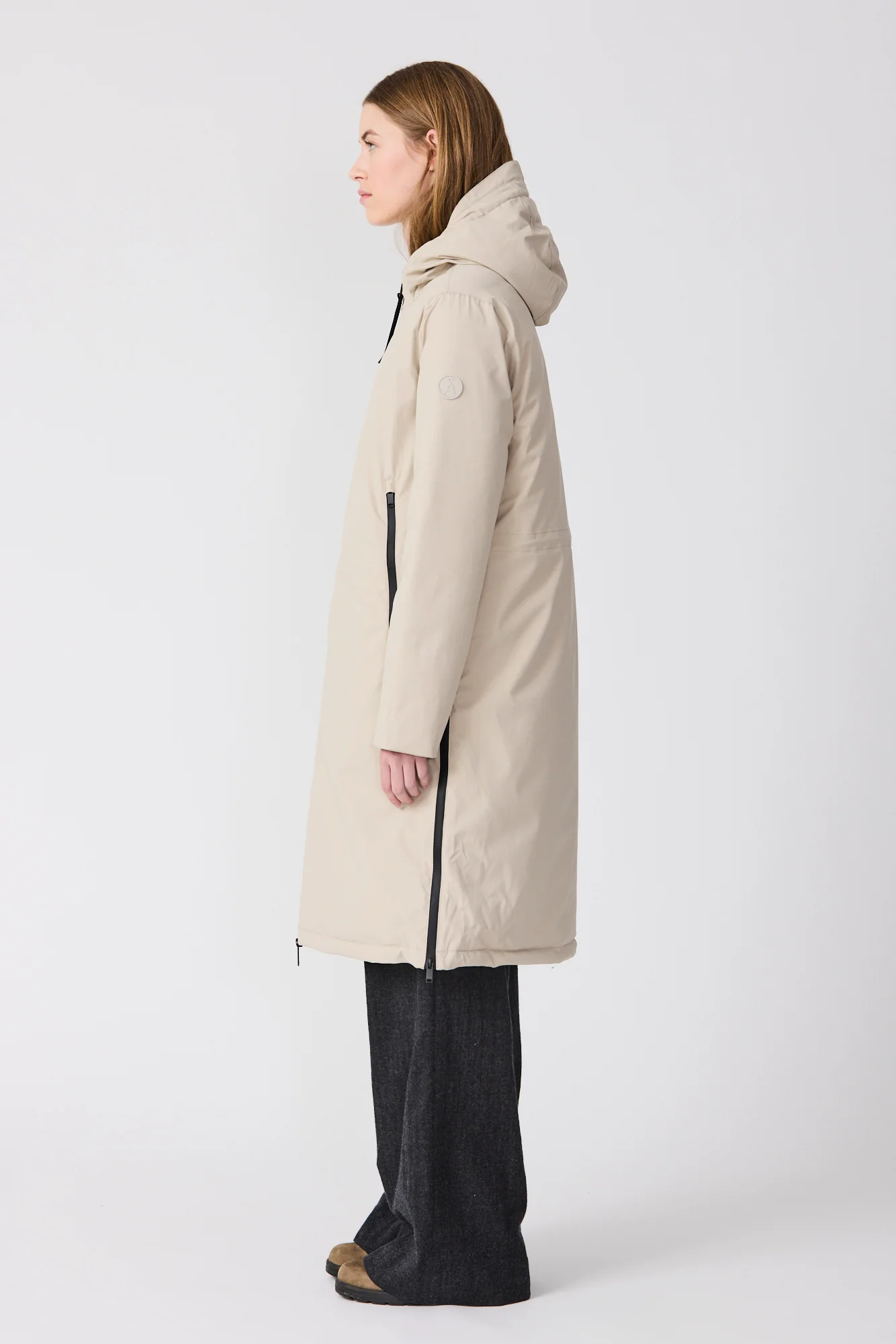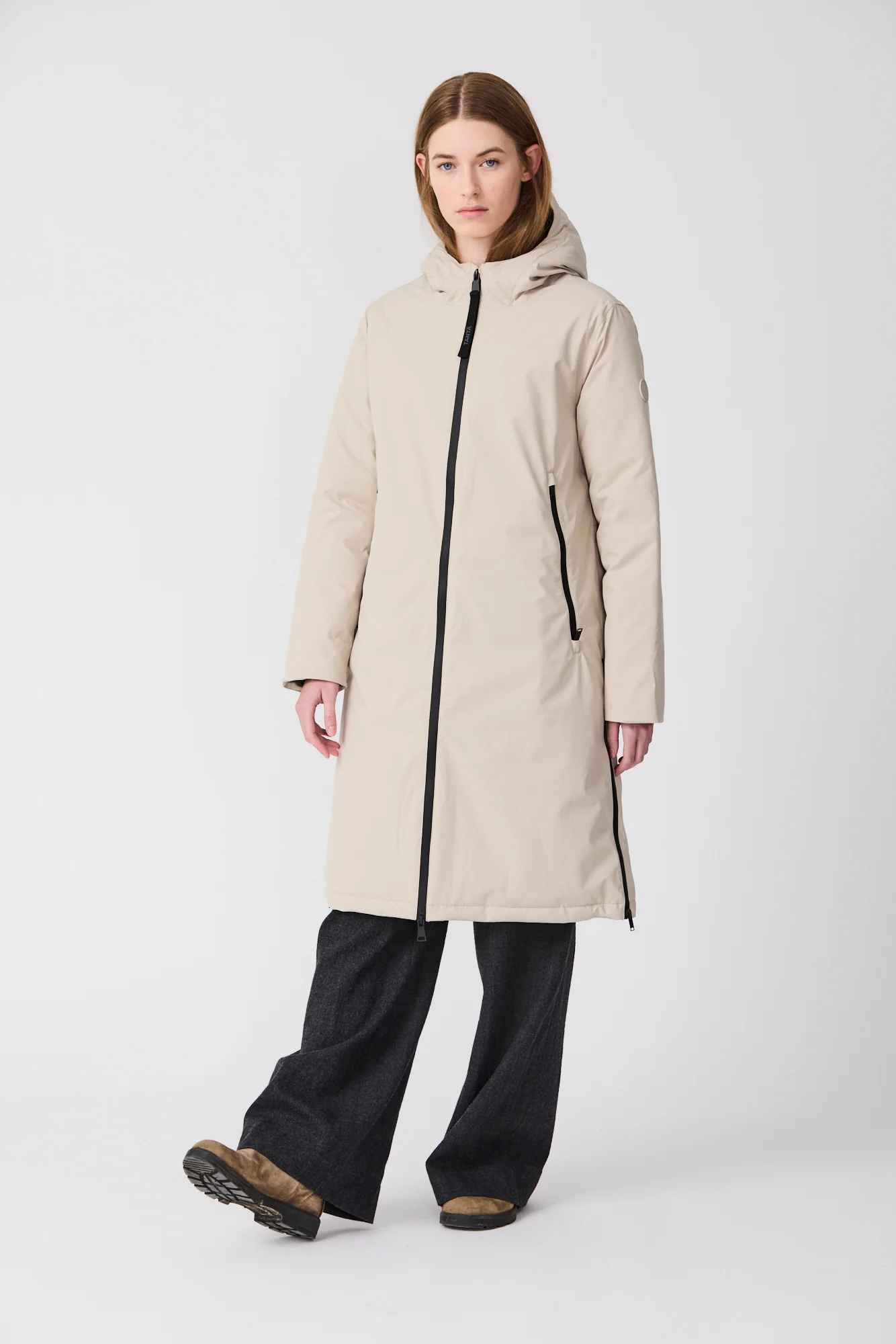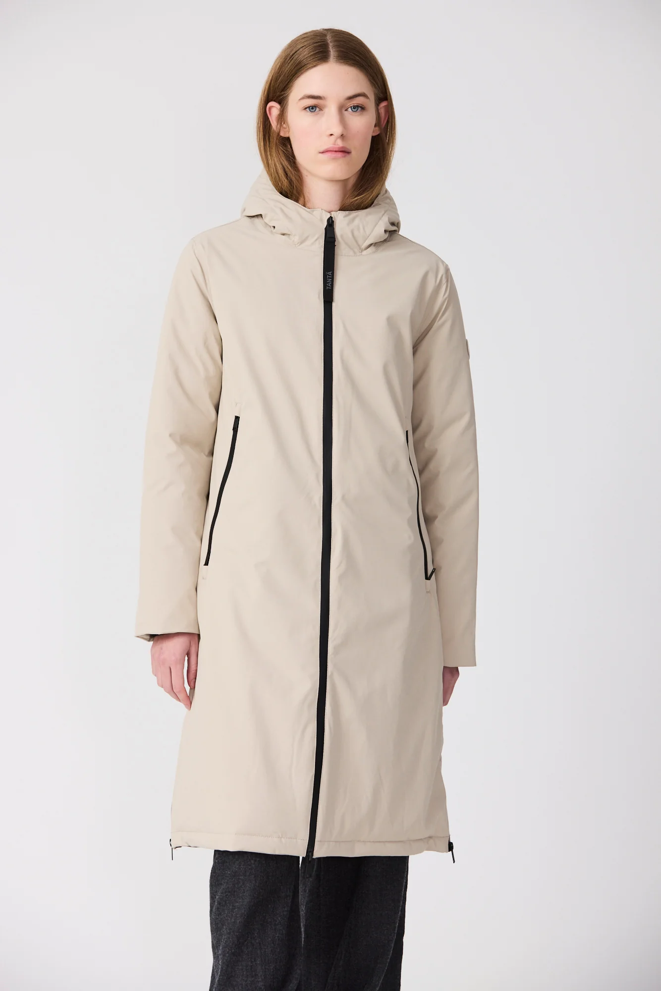 Sigue con tu día sin importar el tiempo que haga. Confeccionado en tejido de sarga de poliéster y acolchado con una capa aislante transpirable y sin plumas, el abrigo Cher tiene una silueta larga en forma de A y todas las costuras están selladas para ofrecer una protección superior. Con bolsillos con cremalleras largas impermeables de doble cursor, se cierra mediante una cremallera impermeable y está acabada con correas interiores tipo mochila para llevar la prenda con las manos libres. Garantiza un ajuste personalizado con una cintura ajustable con cordón en la espalda.