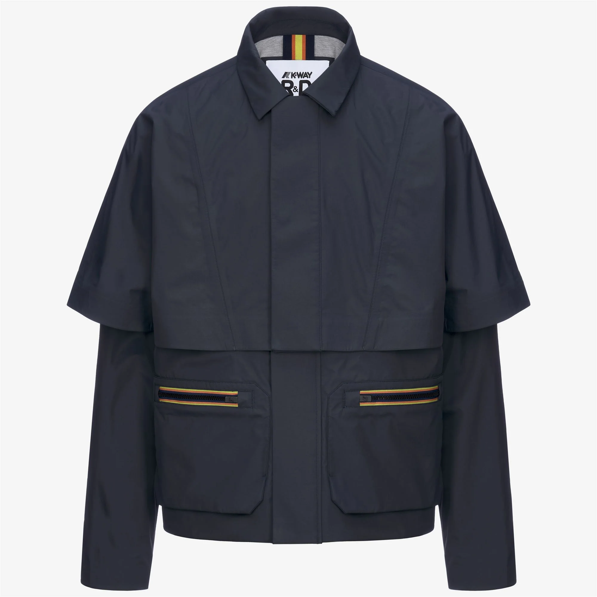 Claf est une veste courte pour hommes qui réinvente le parka de pluie classique avec une touche moderne et superposée. Conçu pour les intempéries, il est fabriqué en nylon ripstop, avec une membrane isolante et une doublure en jersey mélangé laine douce pour un confort accru. Le design inclut une capuche et des poignets ajustables, une fermeture éclair à double curseur avec un rabat tempête, et une nouvelle interprétation des poches emblématiques « packables » de K-Way®, réutilisées à la fois comme détails fonctionnels et déclaratifs avec une fermeture éclair dans les couleurs emblématiques de la marque. Une cape d’épaule intégrée ajoutant un effet superposé sophistiqué.