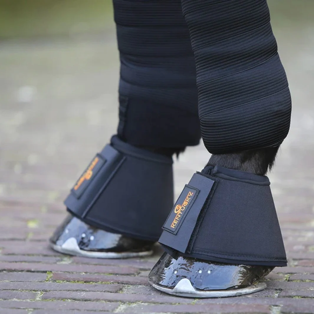 CLOCHES | KENTUCKY : Les cloches Kentucky Solimbra fournissent une excellente absorption des chocs et une protection maximale contre les blessures provoquées par un cheval qui se méjuge. Fabriquées en Solimbra à l’extérieur et en néoprène à l’intérieur, ces cloches sont imperméables à l’eau, résistantes aux intempéries et aux UV et sont respirantes.