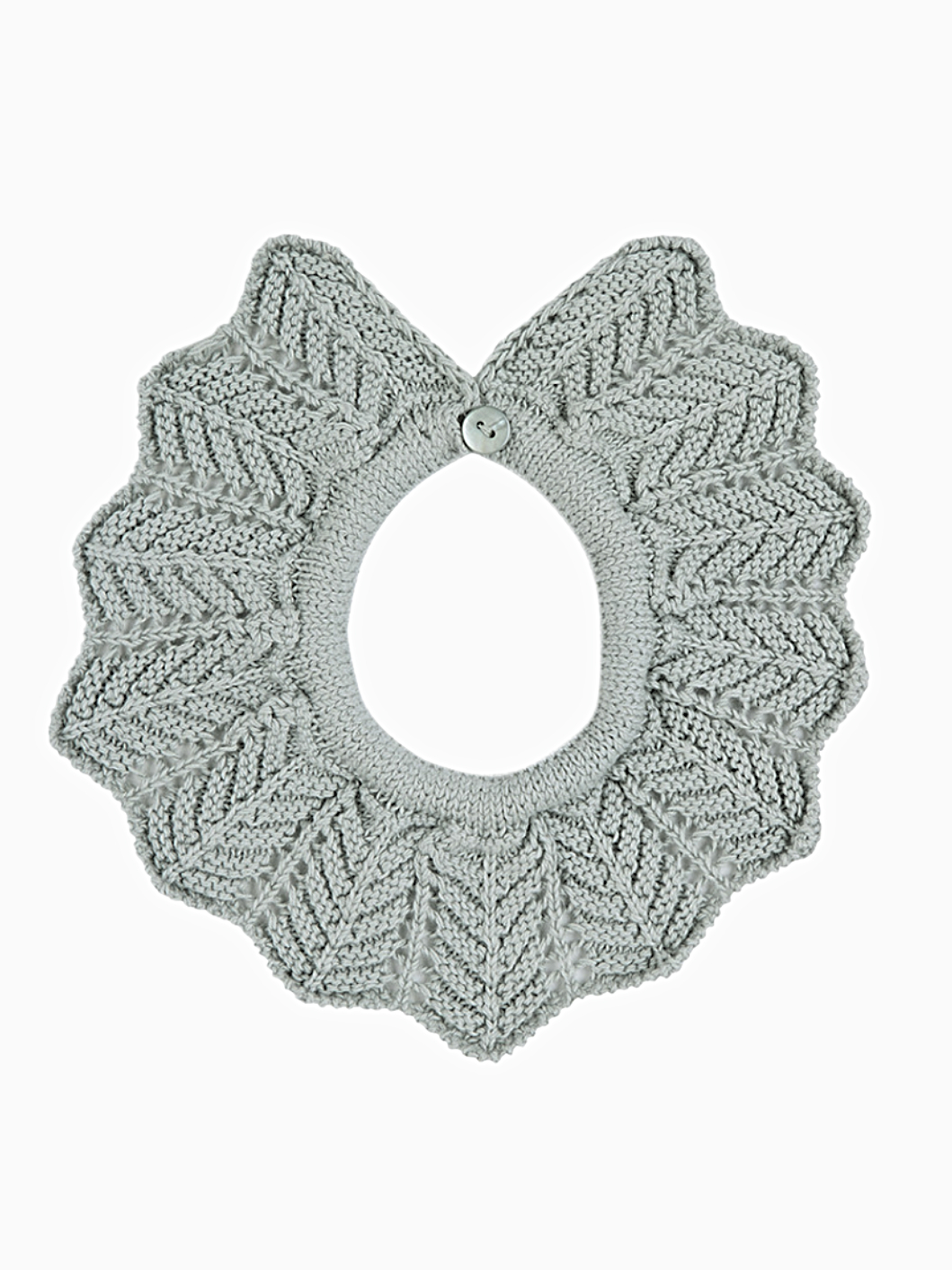 Apportez une finition délicate et élégante aux tenues de votre bébé avec notre col amovible vert pâle en point mousse. Conçu pour s’harmoniser parfaitement notre gilet vert pâle en point mousse, ce col est l’accessoire idéal pour rehausser les looks de votre enfant tout en ajoutant une touche de sophistication. Sa douce teinte vert pâle et ses détails ajourés subtilement travaillés lui confèrent une allure intemporelle, parfaite pour toutes les occasions spéciales ou le quotidien.