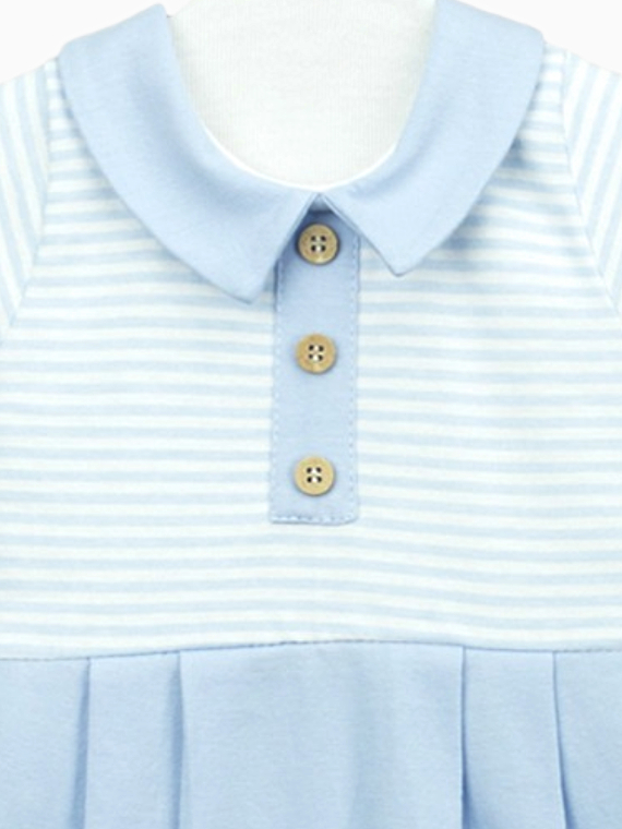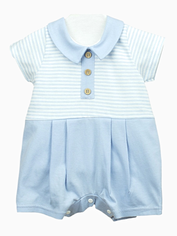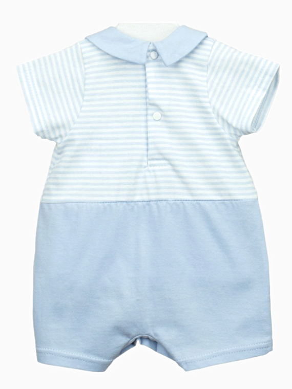 Combishort naissance garçon à col – Bleu ciel/blanc
