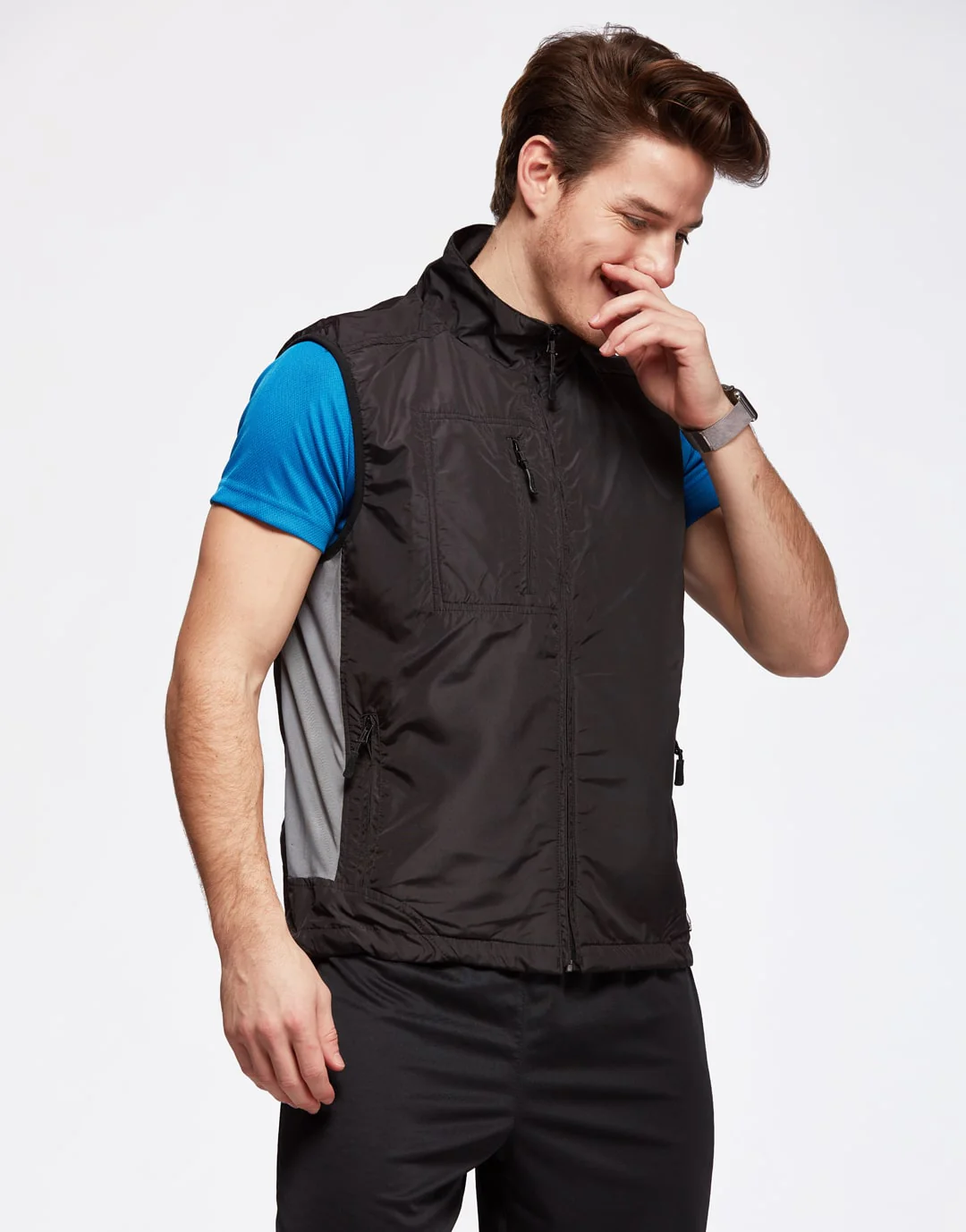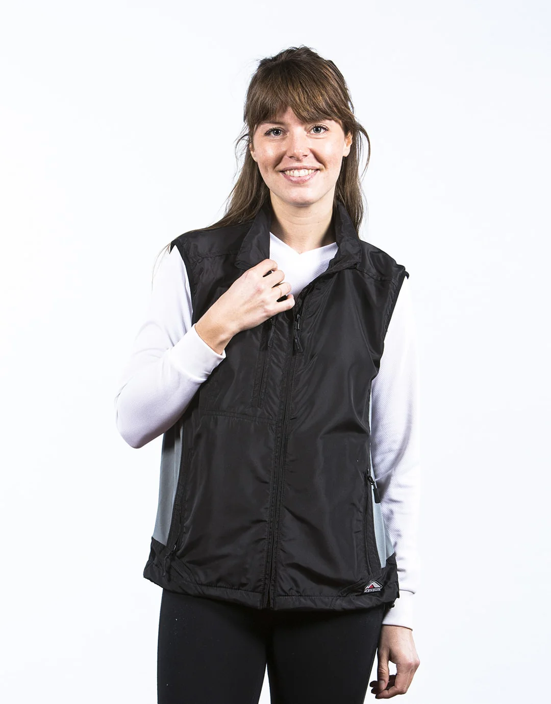 Gilet de sport 100 % polyester, doublure maille polyester. Empiècement latéral extensible lycra. Ouverture totale par zip et flap intérieur. 2 poches main zippées – 1 poche anti-coeur zippée – Cordon de serrage à la taille.