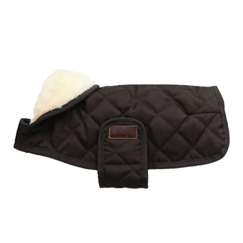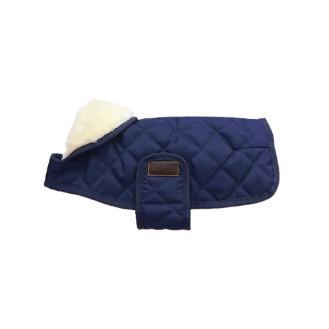 Cet élégant manteau pour chien a été développé pour être assorti à notre gamme de couvertures pour chevaux. Il possède un matelassage de 160g et un revêtement intérieur en poils de lapin synthétique pour un confort inégalable. En effet, ces poils synthétiques créent des minuscules poches d’air qui enferment et retiennent la chaleur corporelle. Cet intérieur innovant très doux lustre également le pelage du chien. Le mouton synthétique au niveau du cou offre un confort supplémentaire, la capuche pouvant être dépliée pour le couvrir davantage.