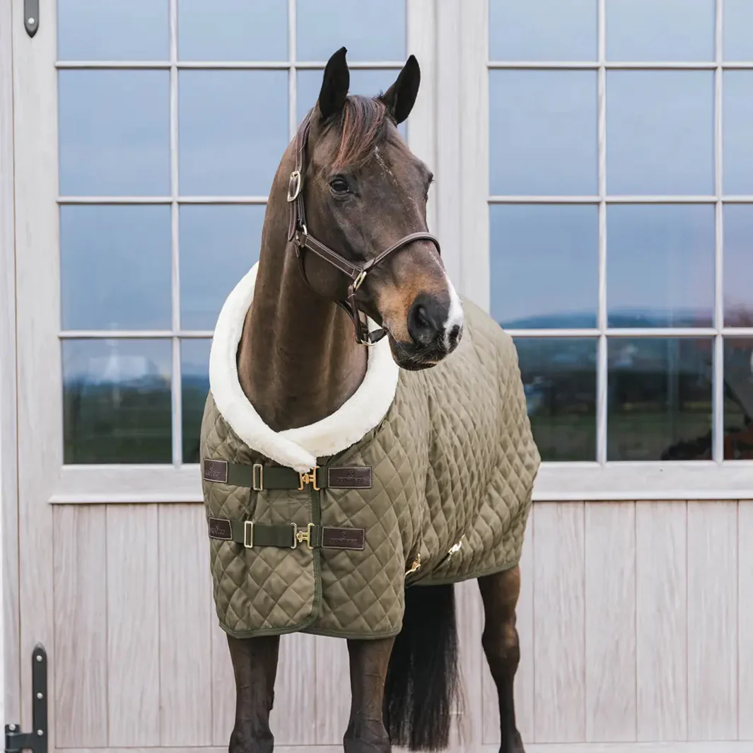 Découvrez la COUVERTURE DE PRÉSENTATION Kentucky, pensée pour allier douceur, protection et présence lors des présentations et des sessions de mise en valeur de votre cheval. Son matelassage de 160 g offre un confort idéal sans surcharge sur le dos, même lors de longues attentes avant le passage en piste.