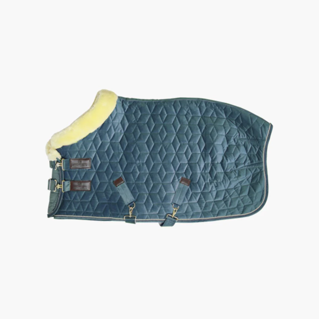 Ce modèle présente une proposition unique: marier le prestige du velours avec une protection pratique et efficace contre les frottements. Le détail « peau de lapin artificielle » à l’intérieur n’est pas seulement esthétique — il agit comme une barrière anti-frottement et crée une isolation air-par-air qui aide à maintenir la chaleur près du corps de votre cheval, sans surchauffe. Le résultat est clair: couverture qui reste en place, résiste à l’épreuve des jours d’écurie et offre une présentation irréprochable lors des déplacements et des compétitions.