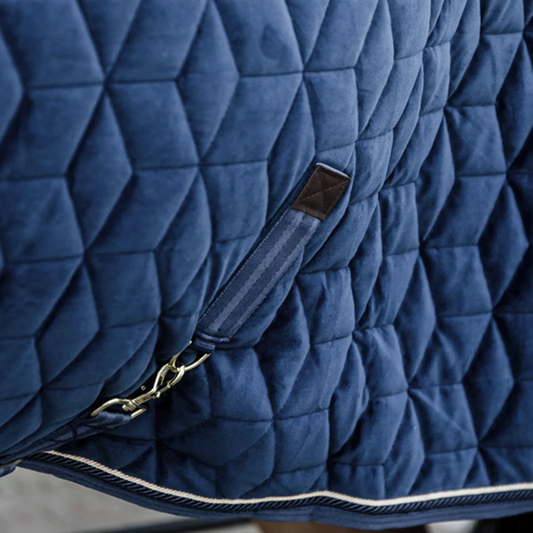 Avec son tissu velours premium et son revêtement intérieur en peau de lapin artificielle, la couverture Velvet ne se contente pas d’être belle: elle protège efficacement contre les frottements et les pertes de chaleur. Le garnissage 160 g et la couche matelassée « cube » créent une isolation homogène, idéale pour les écuries froides, les pré-concours et les trajets en van ou en camions. Le résultat? Un cheval au chaud, qui garde une silhouette nette sous la couverture et qui affiche une apparence soignée dans les boxes et les carrières.