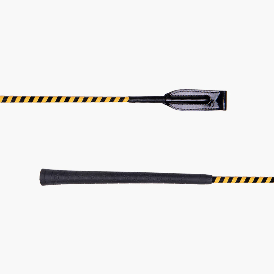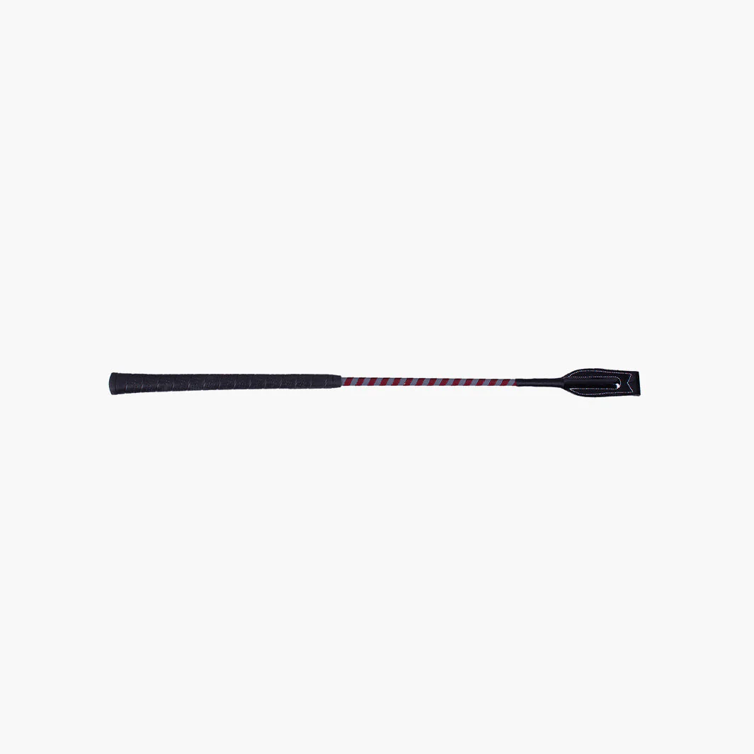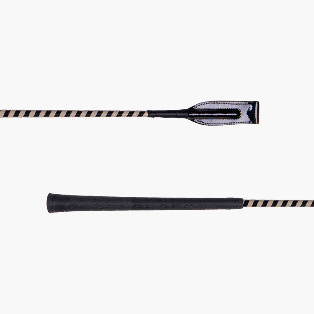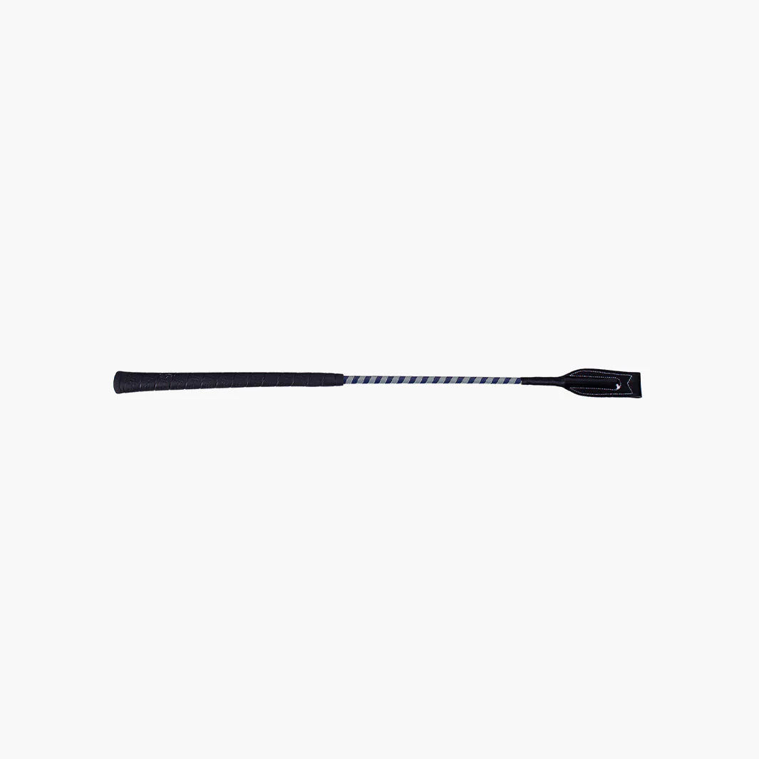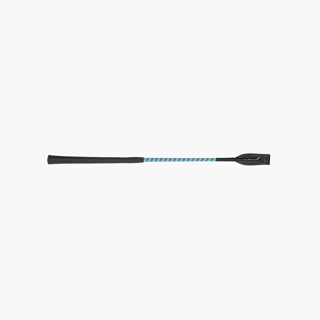 Constitution et prise en main: une poignée en caoutchouc assure une adhérence sûre même pendant les efforts soutenus, tandis que l’extrémité est dotée d’un embout en imitation cuir pour une sensation naturelle et un contrôle précis lors des aides. La finition est soignée, avec un rabat en simili cuir à l’extrémité qui apporte une touche d’élégance et une protection supplémentaire.