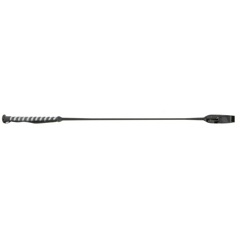 Cravache en fibre de verre recouvert nylon tressé et culot en plastique. Poignée en nylon tressé recouvert caoutchouc antidérapant et spirale en strass, dragonne nylon. Claquette fermée en polyuréthane.