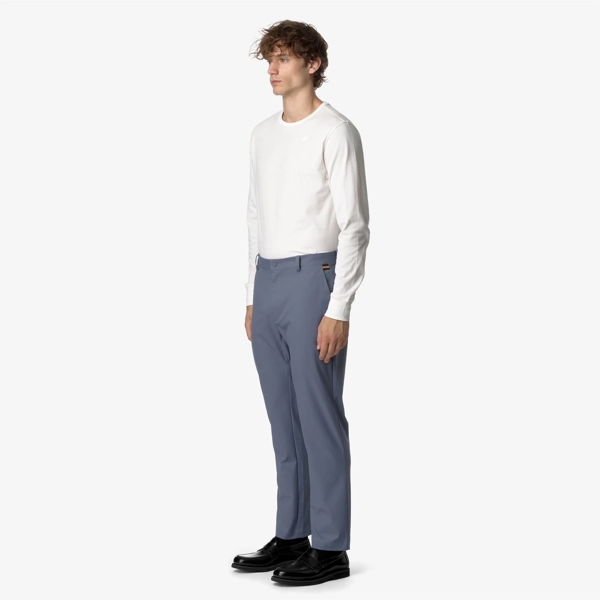 Le pantalon chino Elia incarne le style de K-Way avec son design classique, épuré et fonctionnel. Ce vêtement, offrant une coupe unisexe et confortable, est fabriqué dans un tissu doux et velouté, idéal pour compléter à la fois des looks décontractés et formels au quotidien. Le pantalon, qui comporte une fermeture à glissière et un bouton, des passants pour ceinture à la taille, des poches latérales et une poche arrière passepoilée, arbore également les détails iconiques du ruban K-Way.