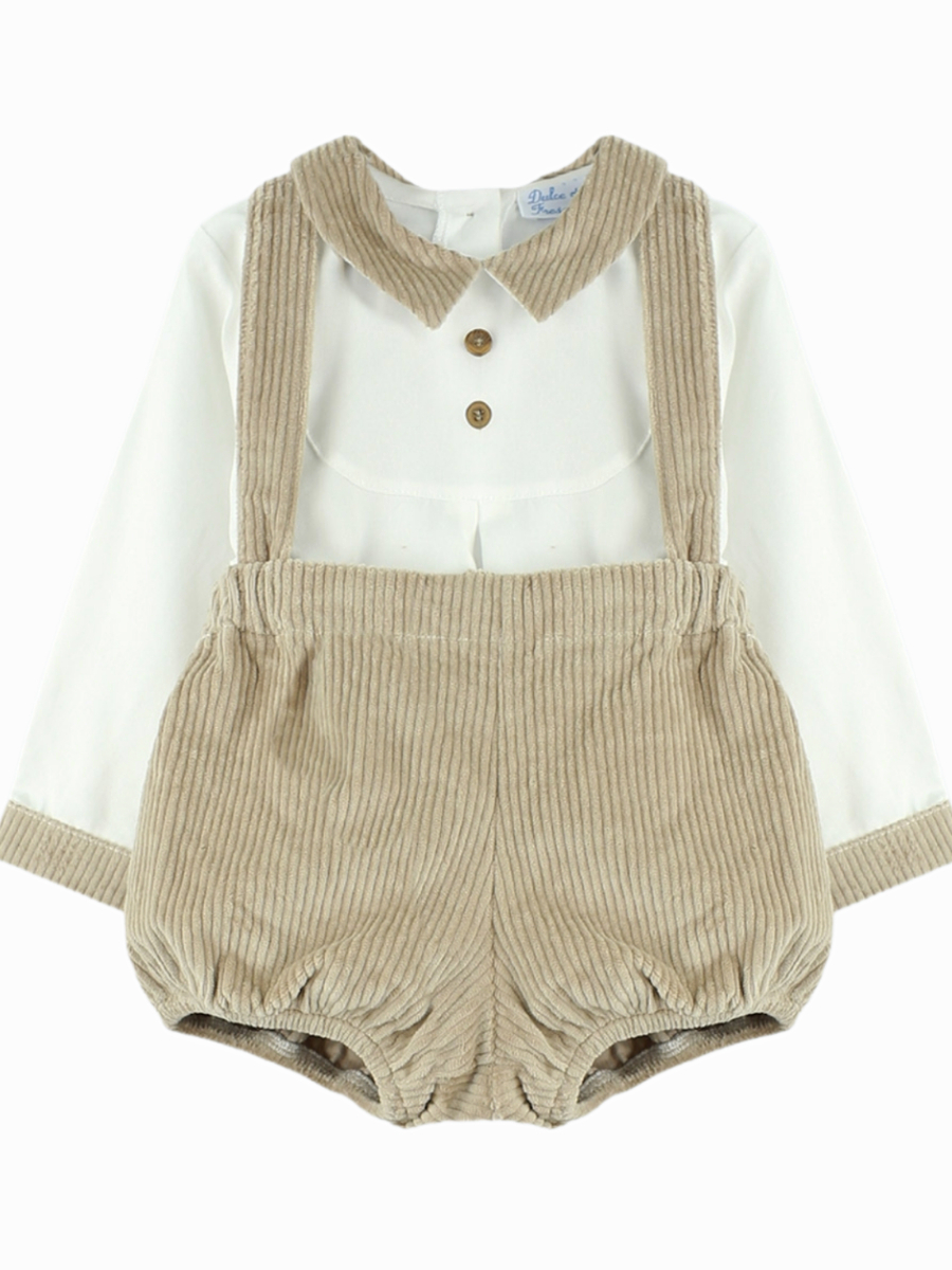 Ensemble bébé garçon blouse et bloomer assortis – Beige