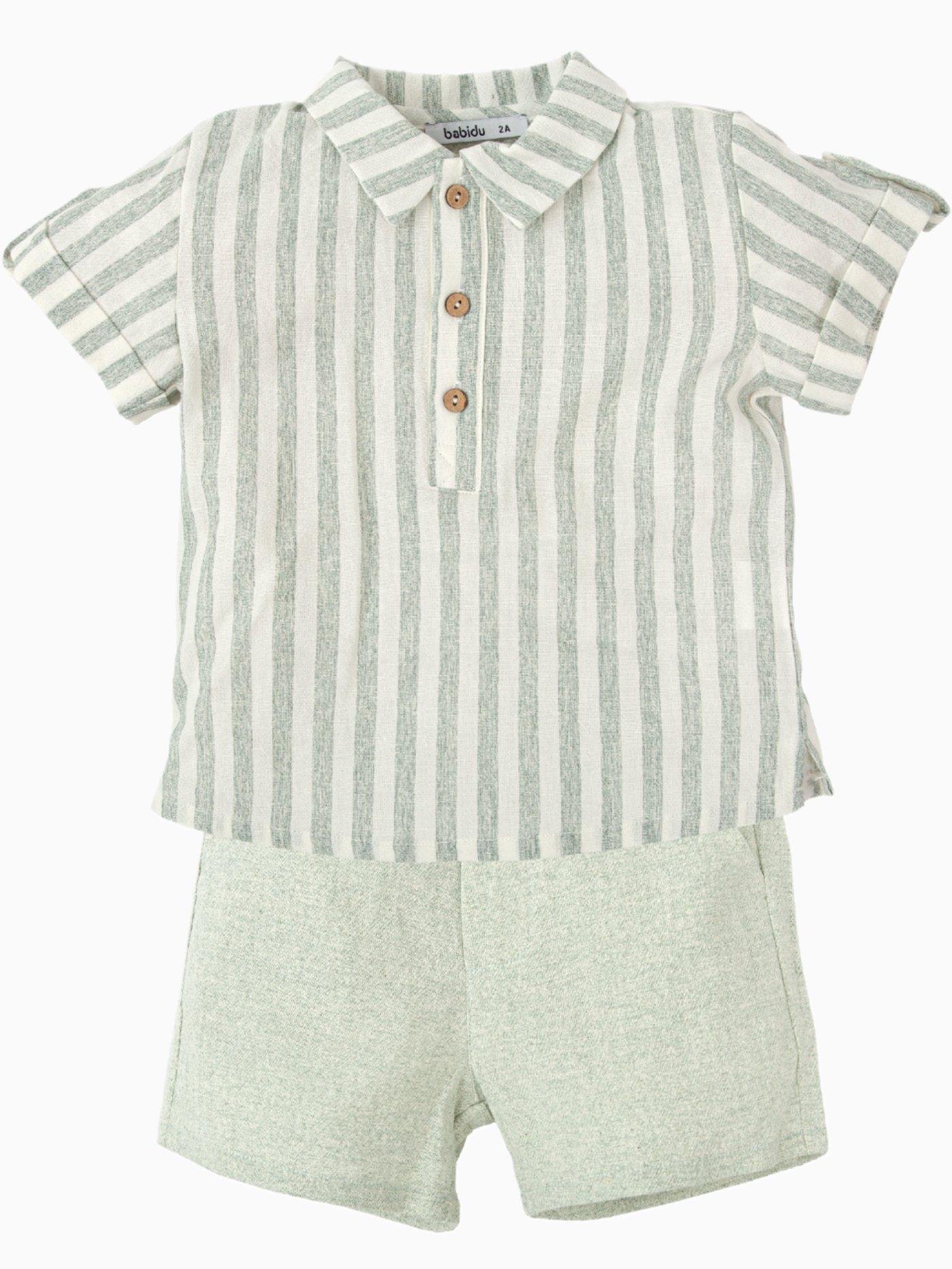 Chemise rayée manches courtes Short droit 55% lin, 45% coton Fabriqué en Espagne Cet ensemble taille normalement. Choisissez la taille habituelle.