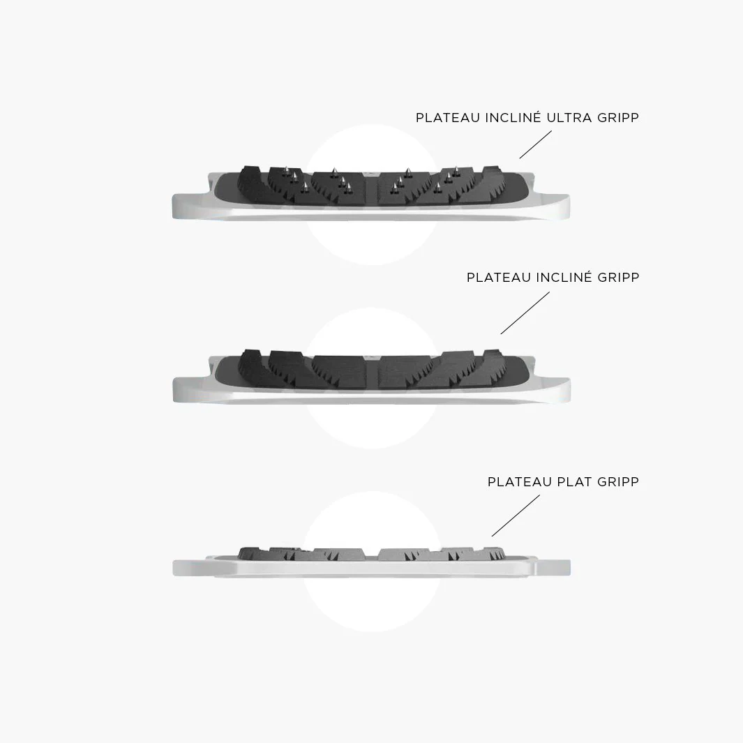 • Plancher doté d’une accroche « Gripp » ou « Ultra-Gripp » pour une adhérence supérieure et une position du pied plus fidèle.