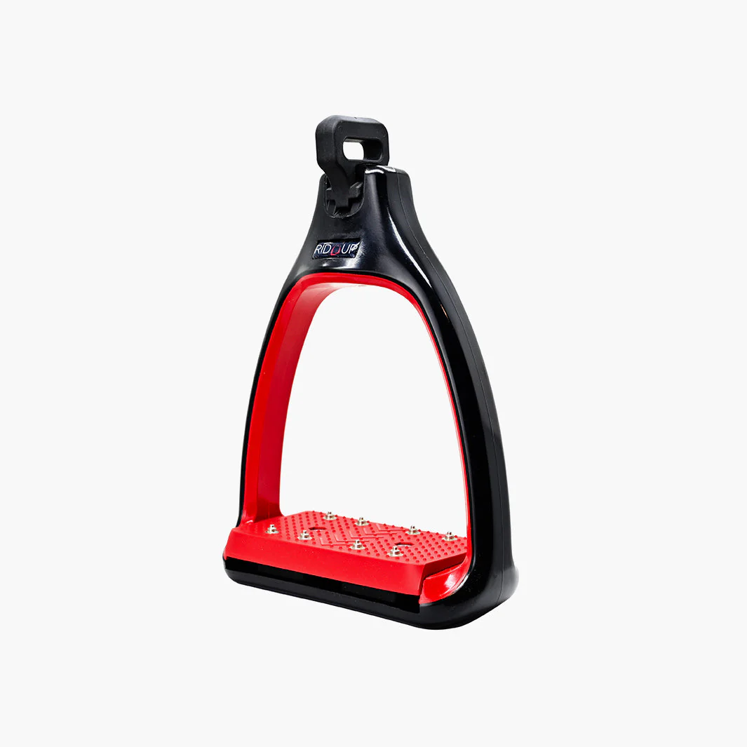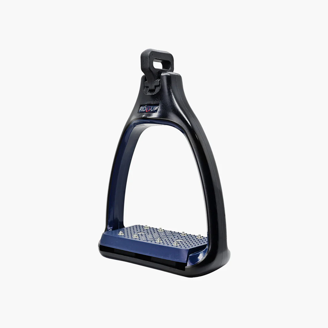 ÉTRIERS PLUS RID’UP redéfinit l’étrier moderne par une alliance inédite entre sécurité active, confort pro et adhérence maximale. Conçus sans pointure ni poids minimaux et avec une largeur intérieure de plancher de 12 cm, ils offrent un positionnement naturel du pied pour une sensations fluide et rassurante à chaque cavalade.